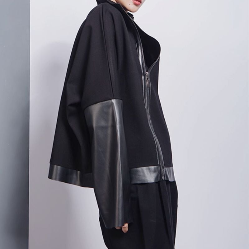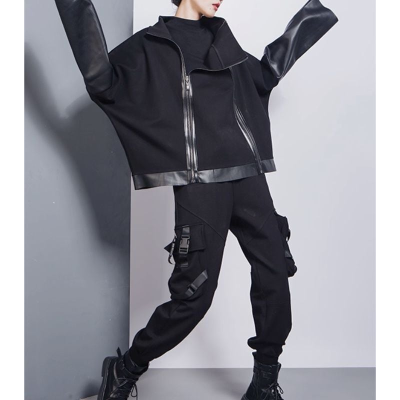 ゆるっとしたドルマンシルエットのダブルジッパートップス。