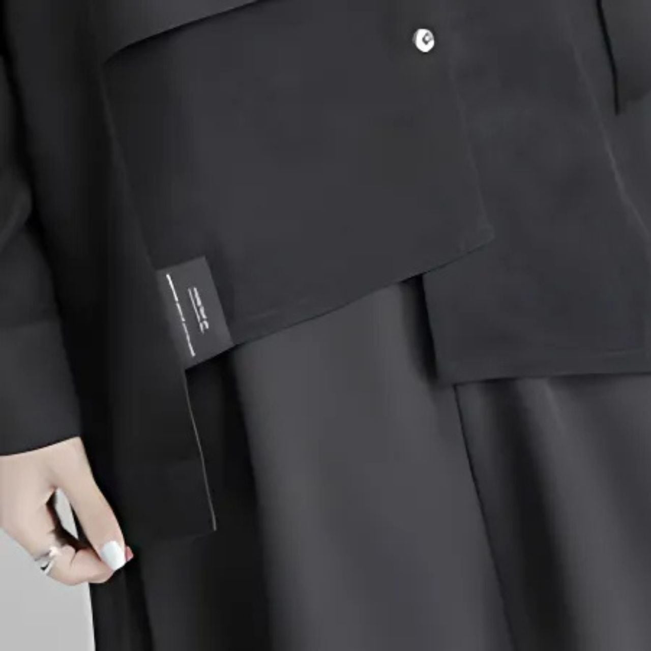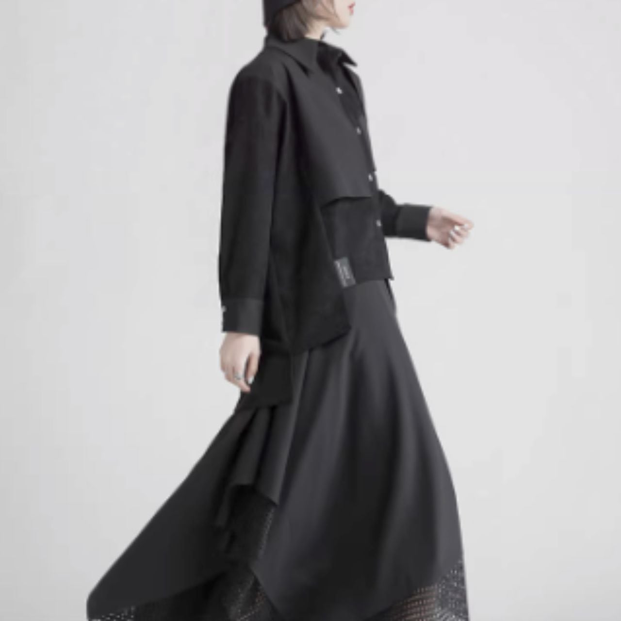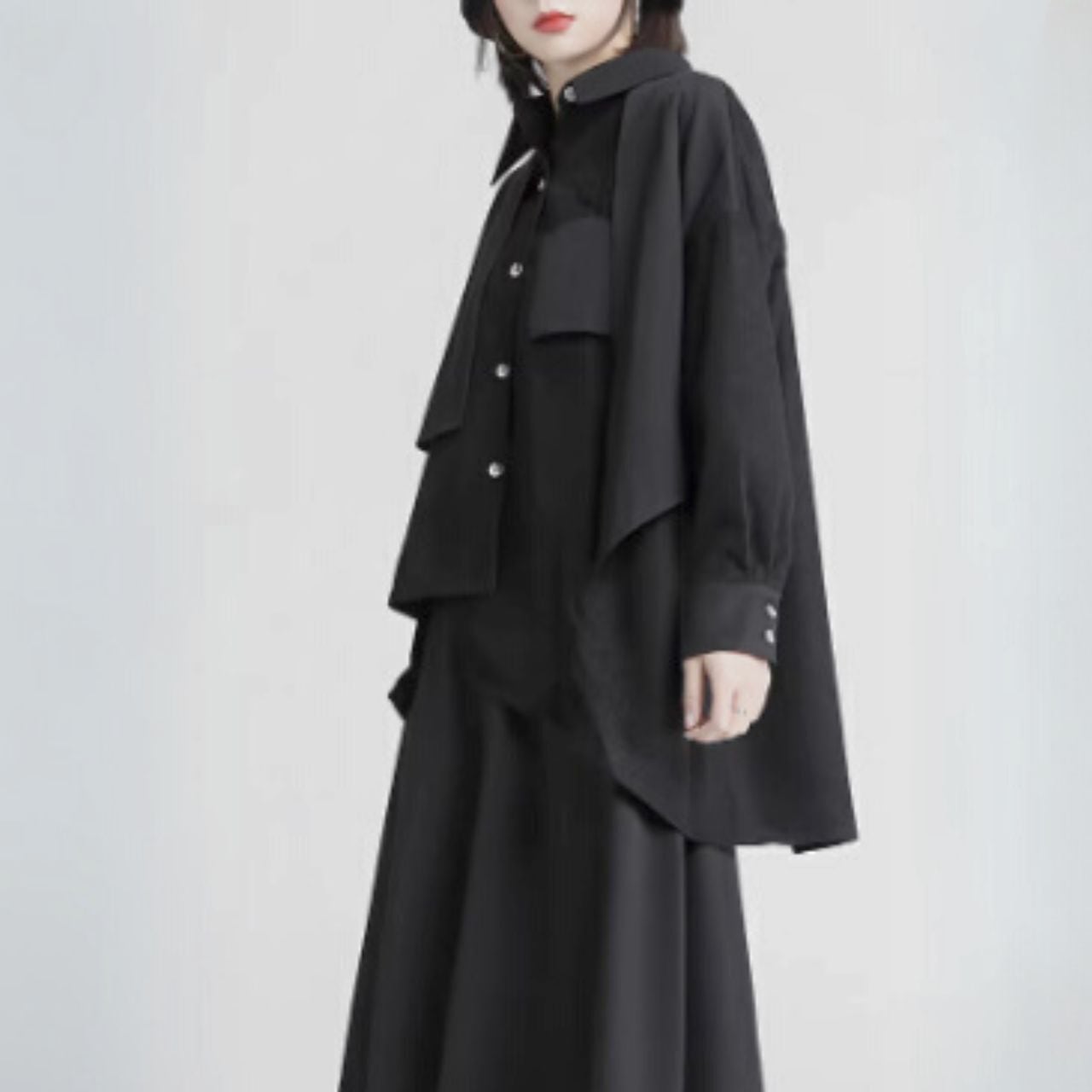 個性的なアシンメトリーデザインが魅力のロングスリーブシャツ。