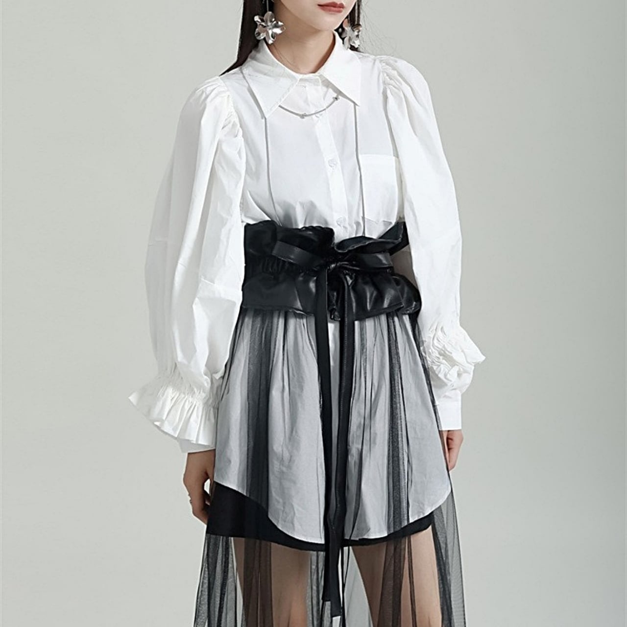 【Irregular double layer mesh shirt dress C0397】https://shop.cravi.net/items/90430869