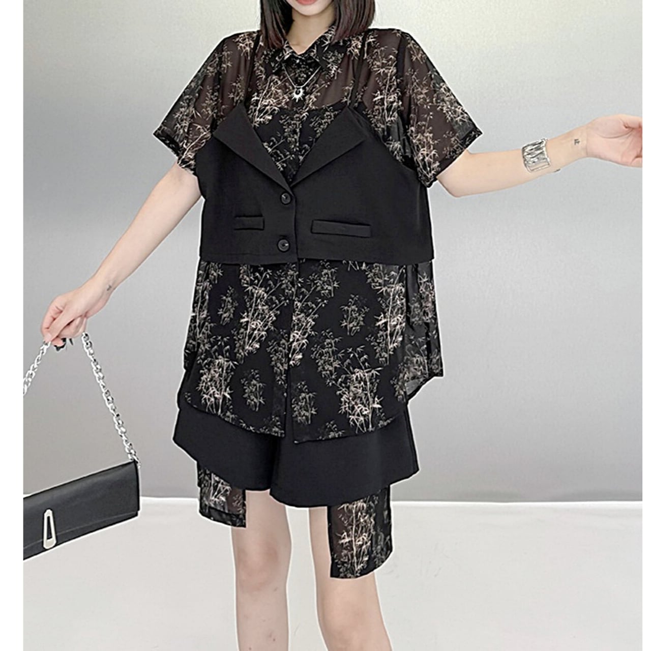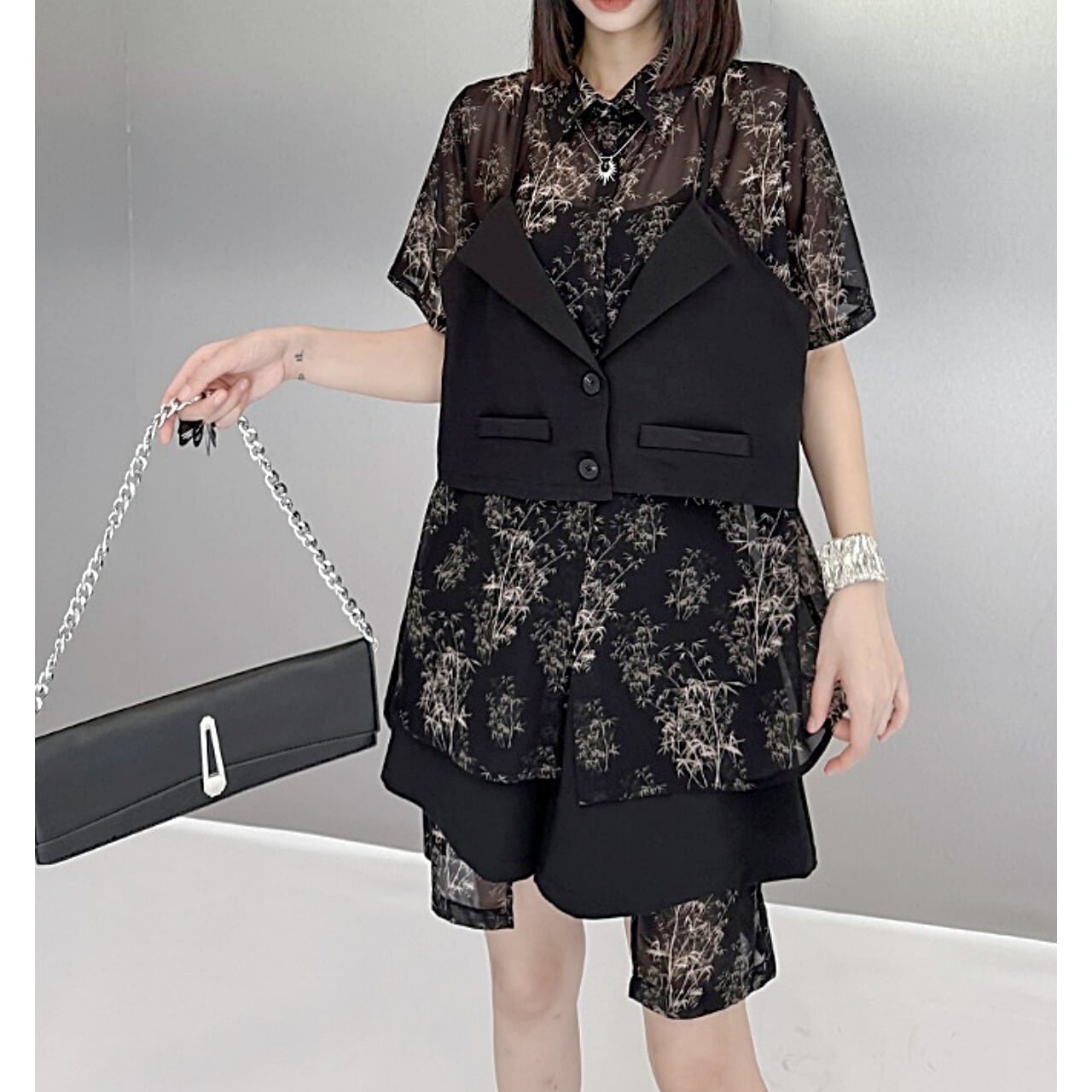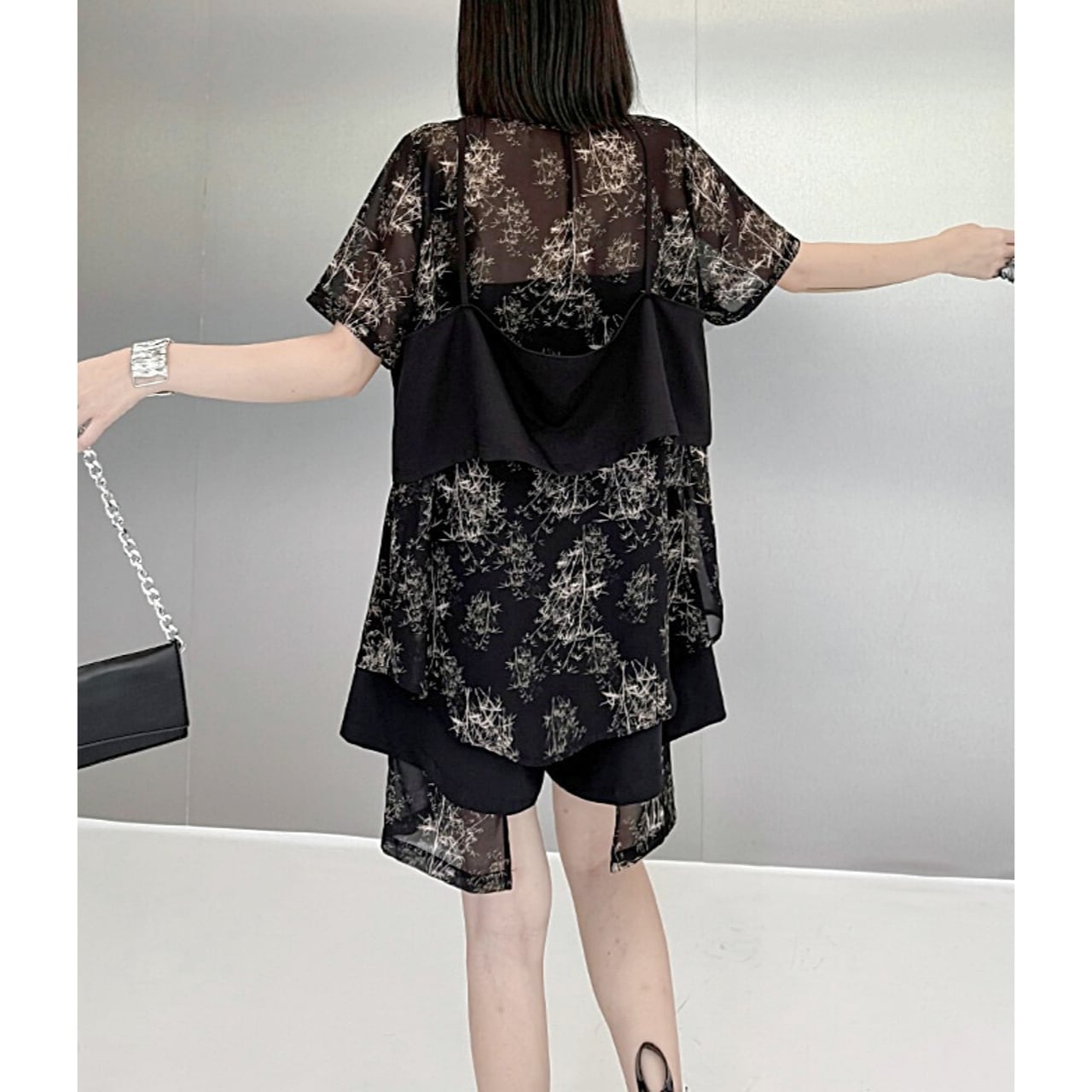 L 肩幅:42cm バスト:124cm ウエスト:128㎝ 着丈:72/76cm 袖丈:25cm 裾幅:70cm
