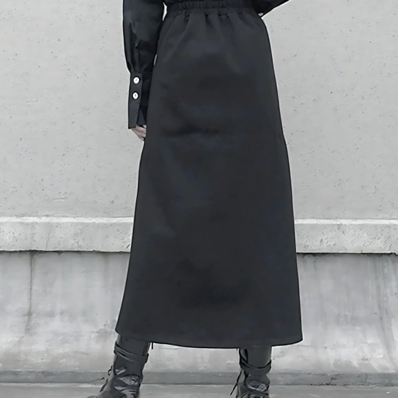 優雅さと動きやすさを兼ね備えたロングスリットスカート。