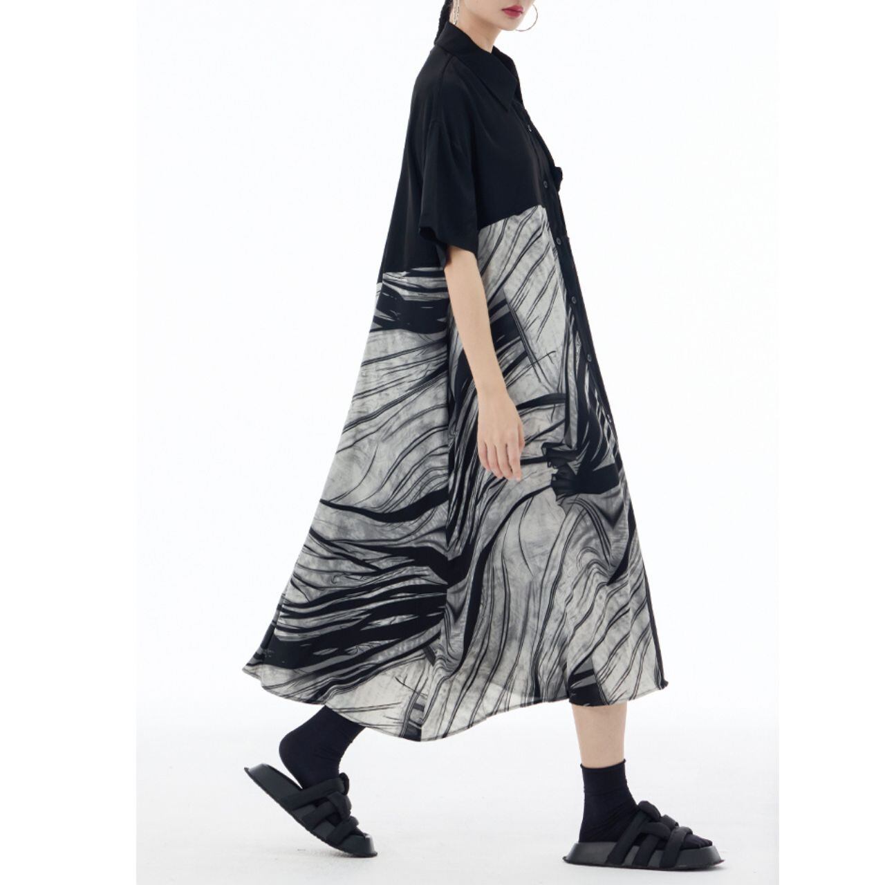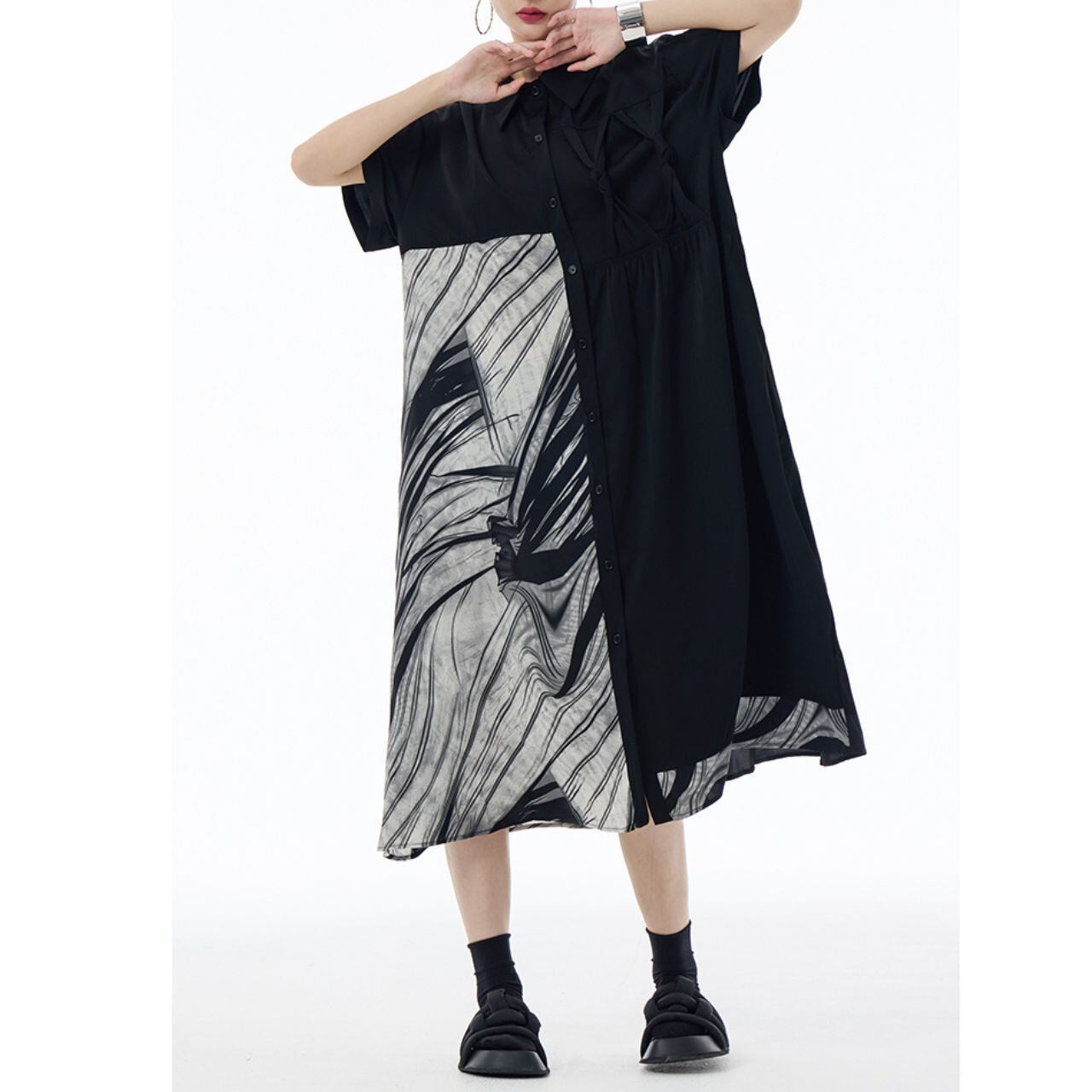 肩幅:53cm 身幅:122cm ウエスト:140cm 袖丈:19cm 着丈:113cm