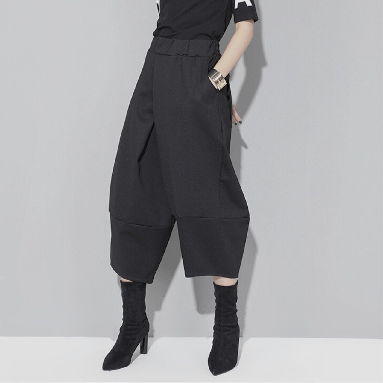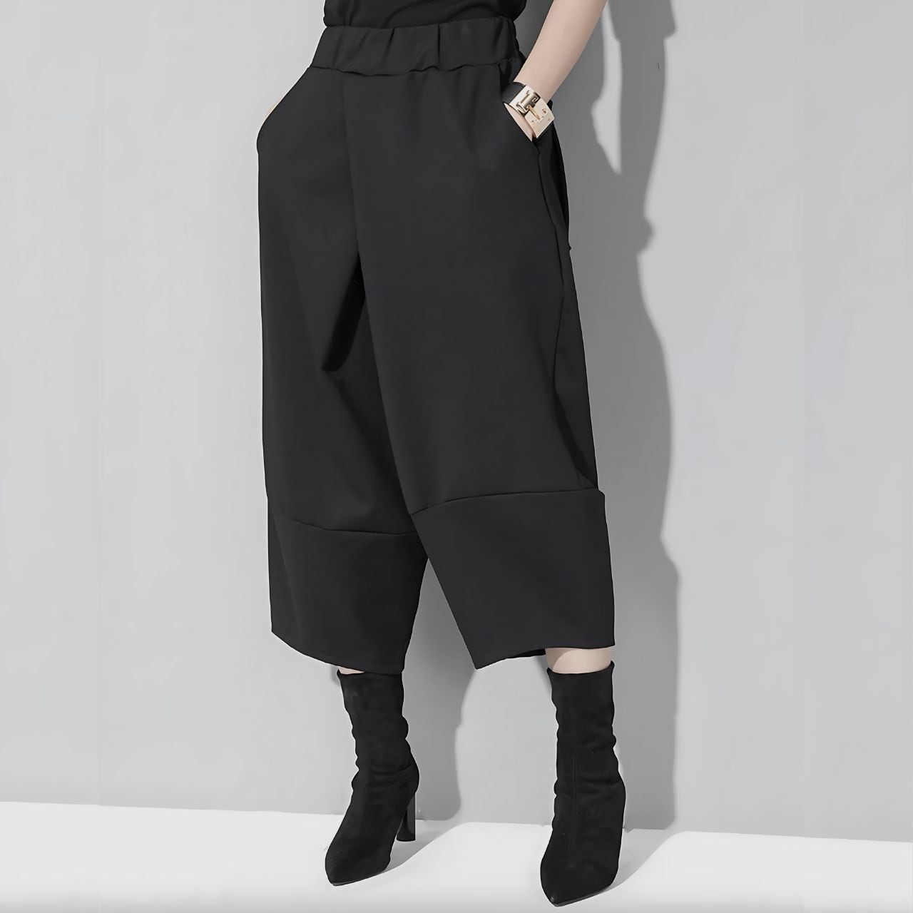 ワイドレッグのデザインとミドル丈で、スタイリッシュなルックスを演出します。