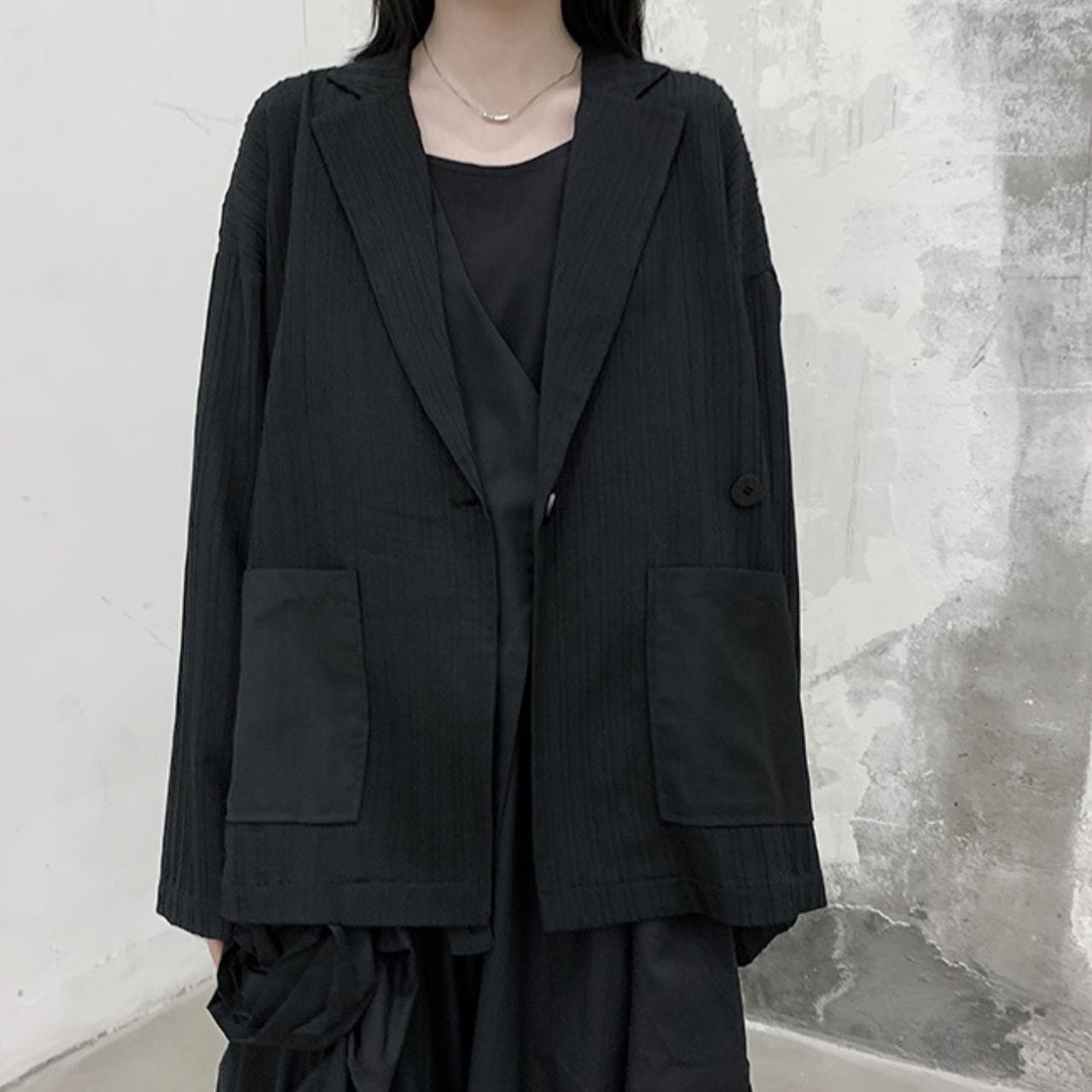 意外に薄手でシワになりにくい生地が特徴的なカーディガンジャケット。