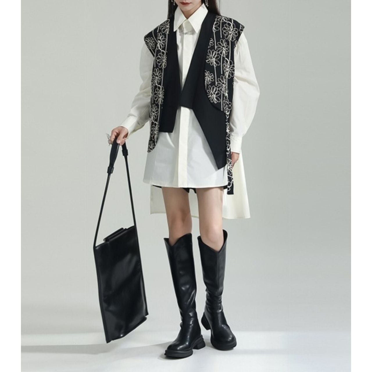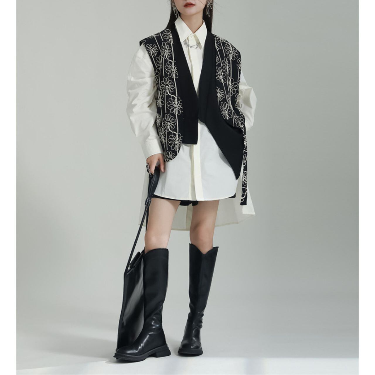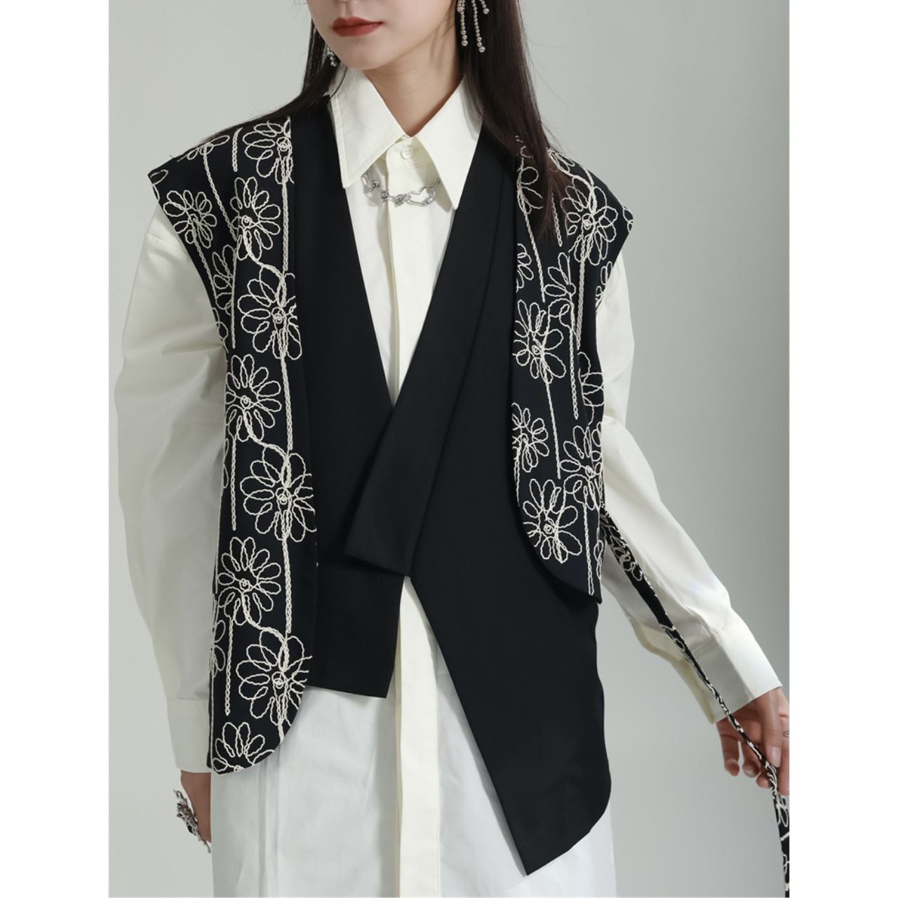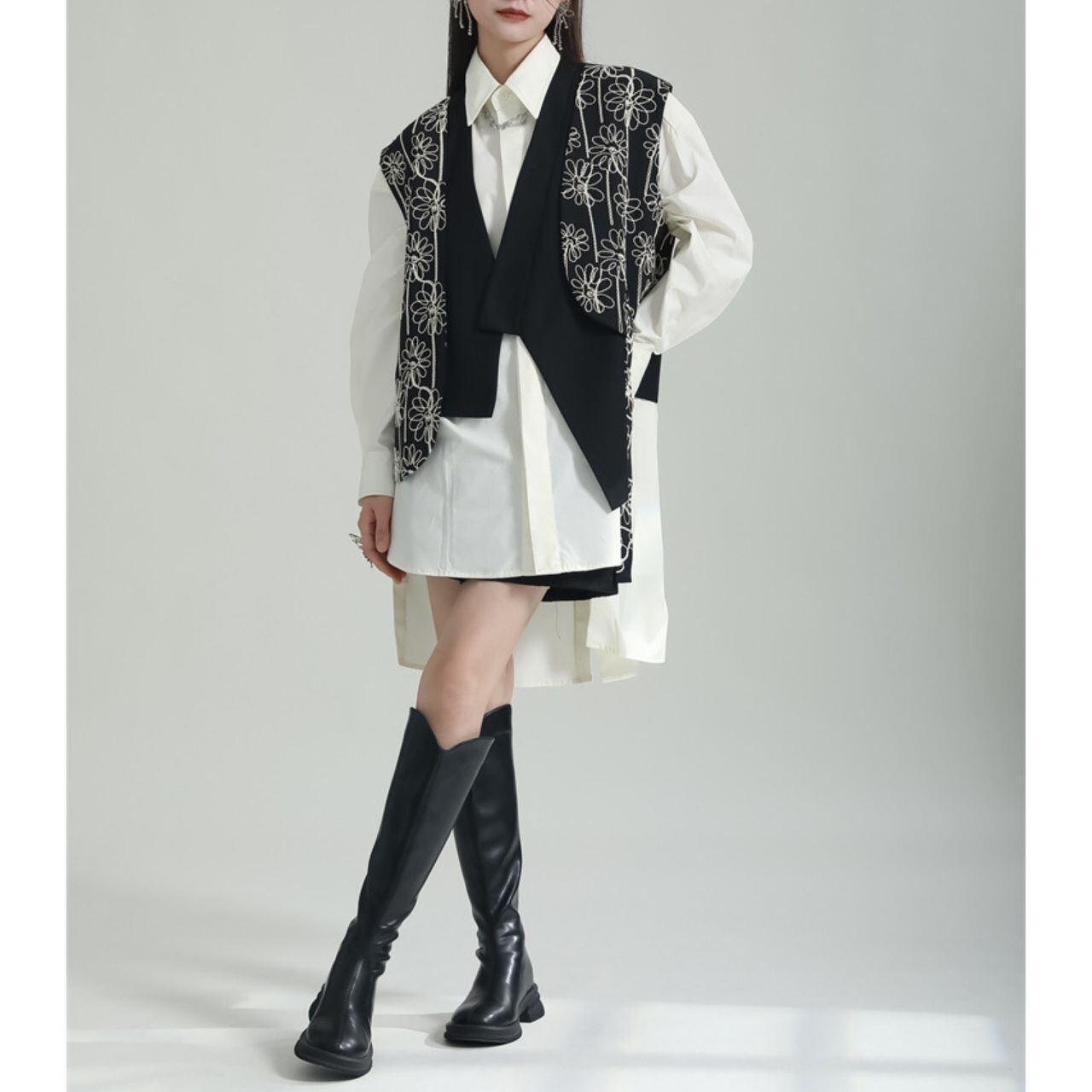華やかな花柄刺繍が施され、不規則なデザインがアクセントになっています。