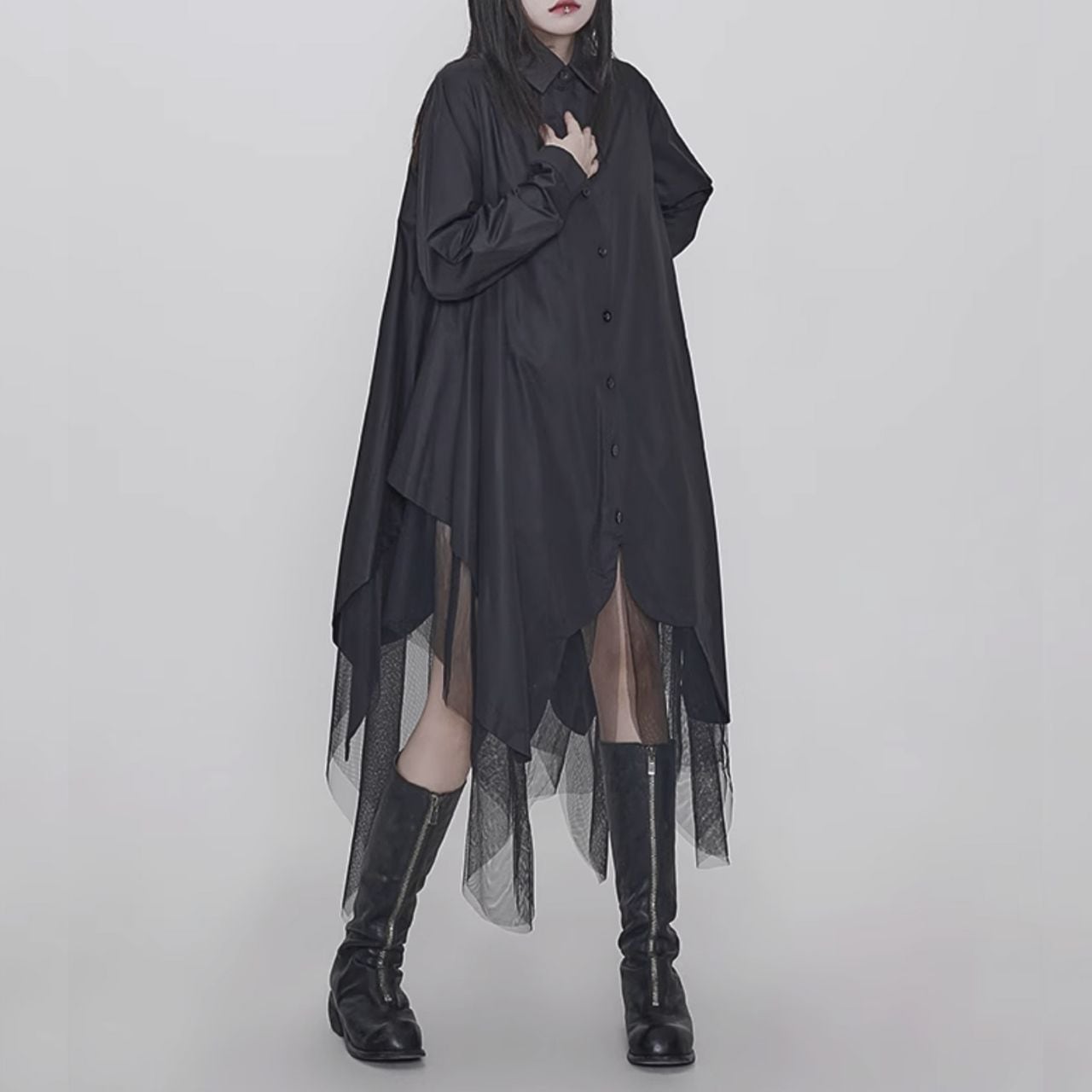 不規則な切り替えとダブルレイヤーのメッシュがおしゃれな着こなしを叶えます。