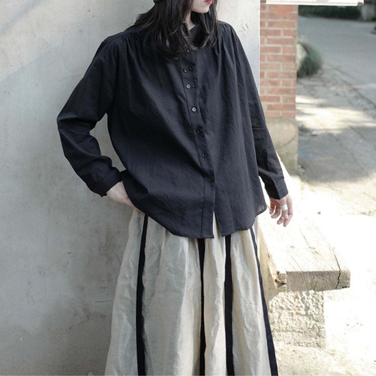 【商品詳細】 スタンドカラーのロングスリーブトップで、スタイリッシュな印象を与えます。 シンプルながらも洗練されたダブルボタンのデザインが魅力で、どんなコーディネートにもぴったりな一枚。 さりげなく個性を引き立てるアイテムとして、毎日のスタイルに寄り添います。 【Size】 S 肩幅:41cm 胸囲:128cm 着丈:65cm 袖丈:52cm M 肩幅:42cm 胸囲:132cm 着丈:66cm 袖丈:53cm L 肩幅:43cm 胸囲:136cm 着丈:67cm 袖丈:54cm XL 肩幅:44cm 胸囲:140cm 着丈:68cm 袖丈:55cm ※採寸方法により1〜3cmの誤差がある場合がございます 【Color】 ブラック、ホワイト 【fabric】 コットン 【お届けについて】 こちらの商品は海外店舗より直接発送となる為、 ご入金からお届けまでに1〜4週間前後お時間をいただきます(メーカー長期休業時を除く)。 ■注意事項 ・タイミングによっては 商品在庫切れにより 注文キャンセルとさせていただく恐れもございますので、 予めご了承くださいませ。 ・こちらは輸入品となります。 日本製とは検品基準が異なる為、新品未使用品でも ごくわずかな汚れや傷がある場合もございます。 ・商品の色味は、お手持ちのスマートフォンの 画面によって実物と若干異なる場合がございます。 ・イメージ違いやサイズ等、お客様都合による交換、 返品、キャンセルは対応出来かねます。 -------------------------- 【SHOP ABOUT】ご購入前にこちらをお読みください https://cravi.shopselect.net/about 【HOT ITEMはこちら】 →https://shop.cravi.net/categories/6009834 【ハット・ストール等の小物はこちら】 https://shop.cravi.net/categories/5943609 【合わせ買いに!他では買えない個性的なアクセサリー】 https://shop.cravi.net/categories/6120742