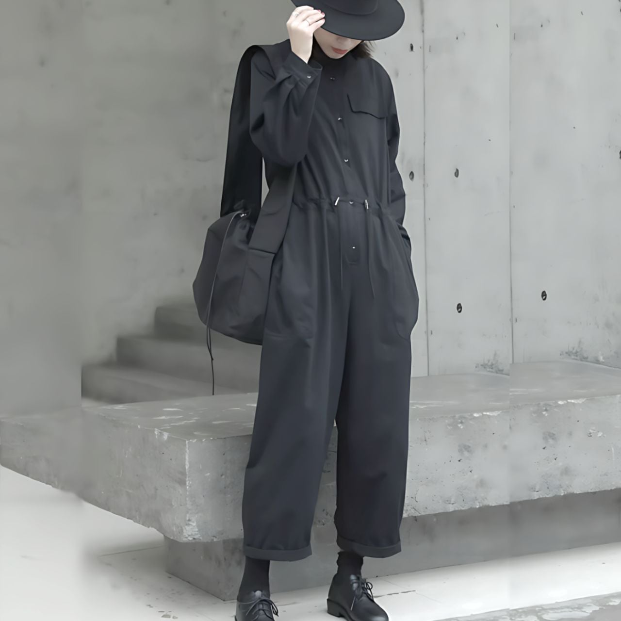 シンプルながらもおしゃれなカジュアルルーズジャンプスーツ。
