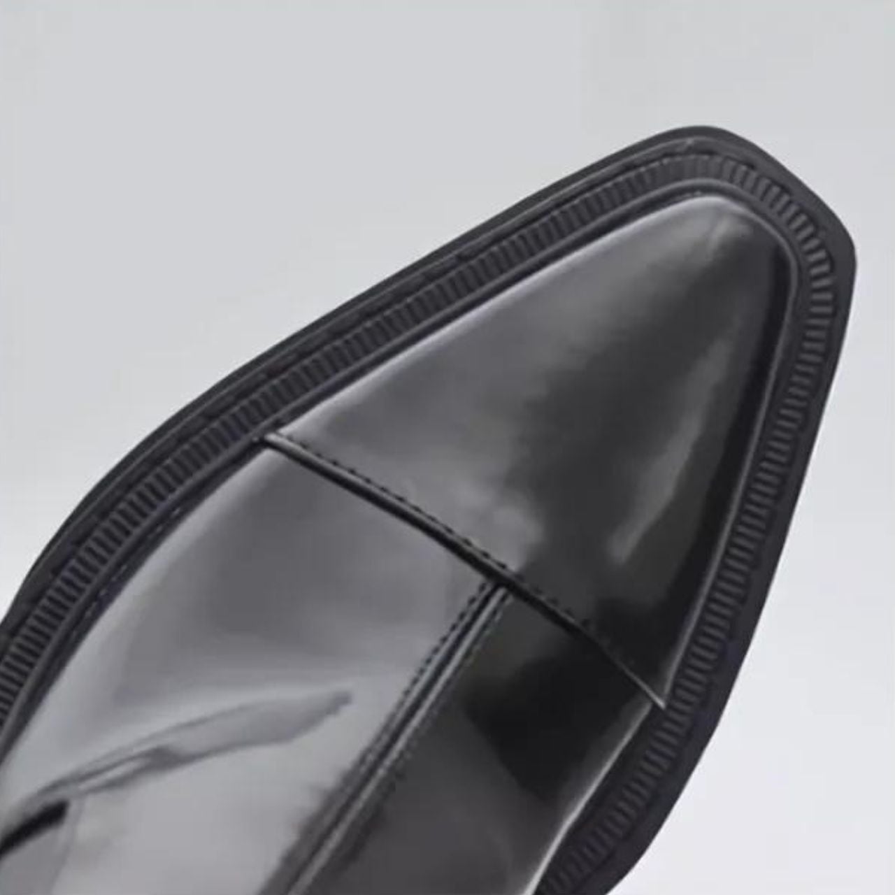 シンプルなデザインながら、存在感のあるヒールがおしゃれなアクセントになっています。