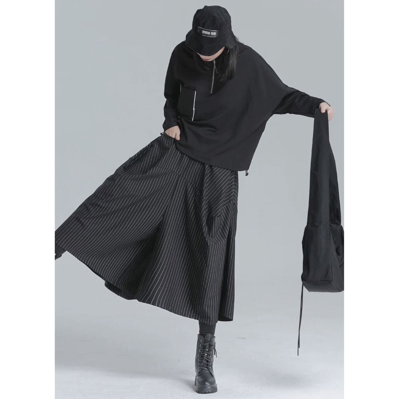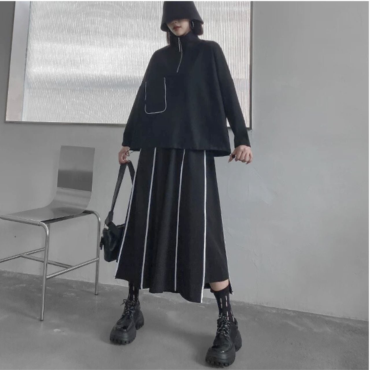 バットスリーブとハーフタートルネックが特徴的なデザインです。