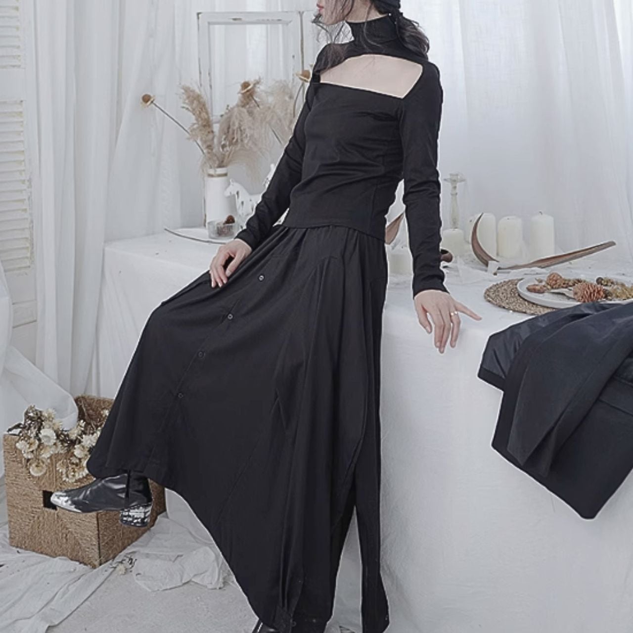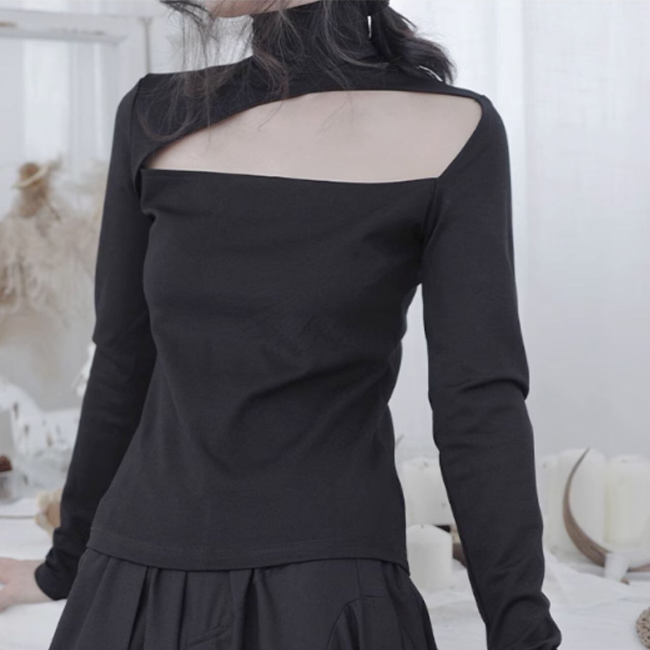 【商品詳細】 デコルテが大胆にカットされたハイネックのスリムフィットトップス。 シンプルながらも美しいラインを強調し、スタイリッシュな印象を与えます。 フィット感があるため、着ぶくれしないのが嬉しいポイントです。 【Size】 S 肩幅:34cm 胸囲:80cm 着丈:57cm 袖丈:60cm M 肩幅:35cm 胸囲:84cm 着丈:58cm 袖丈:61cm L 肩幅:36cm 胸囲:88cm 着丈:59cm 袖丈:62cm XL 肩幅:37cm 胸囲:92cm 着丈:60cm 袖丈:63cm ※採寸方法により1〜3cmの誤差がある場合がございます 【Color】 ブラック 【fabric】 コットン100% 【お届けについて】 こちらの商品は海外店舗より直接発送となる為、 ご入金からお届けまでに1〜4週間前後お時間をいただきます(メーカー長期休業時を除く)。 ■注意事項 ・タイミングによっては 商品在庫切れにより 注文キャンセルとさせていただく恐れもございますので、 予めご了承くださいませ。 ・こちらは輸入品となります。 日本製とは検品基準が異なる為、新品未使用品でも ごくわずかな汚れや傷がある場合もございます。 ・商品の色味は、お手持ちのスマートフォンの 画面によって実物と若干異なる場合がございます。 ・イメージ違いやサイズ等、お客様都合による交換、 返品、キャンセルは対応出来かねます。 -------------------------- 【SHOP ABOUT】【SHOP ABOUT】ご購入前にこちらをお読みください https://cravi.shopselect.net/about 【HOT ITEMはこちら】 https://shop.cravi.net/categories/6009834 【ハット・ストール等の小物はこちら】 https://shop.cravi.net/categories/5943609 【合わせ買いに!他では買えない個性的なアクセサリー】 https://shop.cravi.net/categories/6120742