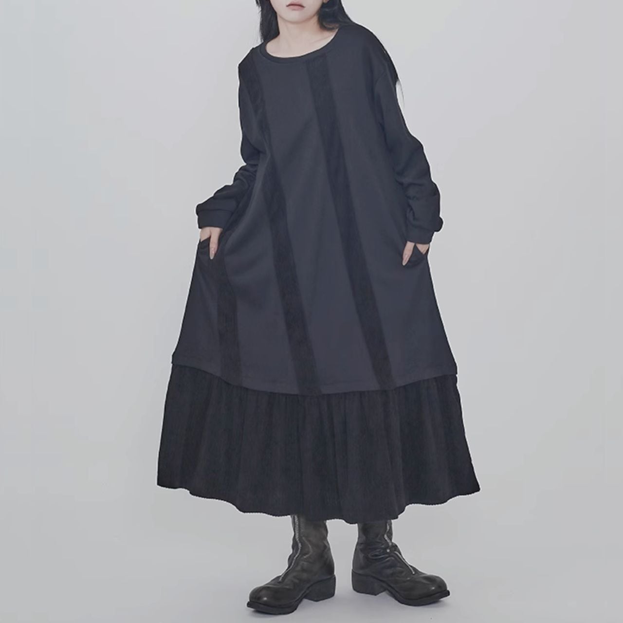 ふんわりと広がるシルエットと、フリルのドッキングが美しいワンピース。