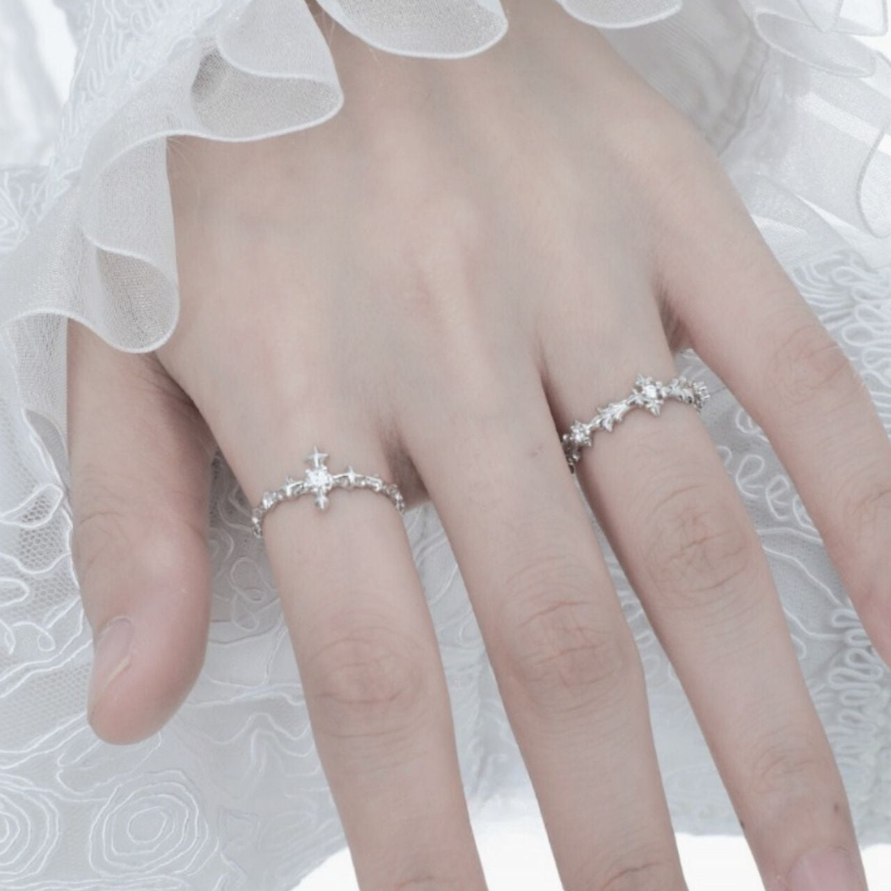 大小の十字架のモチーフをあしらったエレガントなオープンリング。