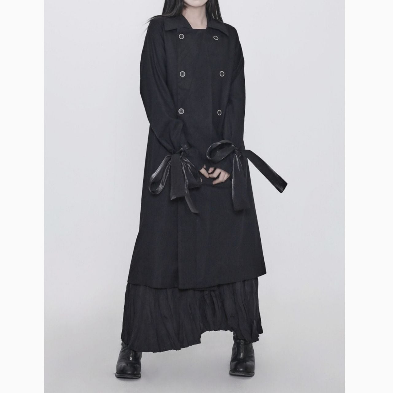 リボンで表情をアレンジできる、個性的なデザインのロングウィンドブレーカー。