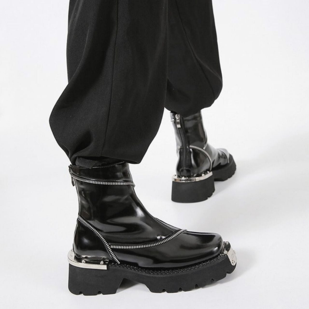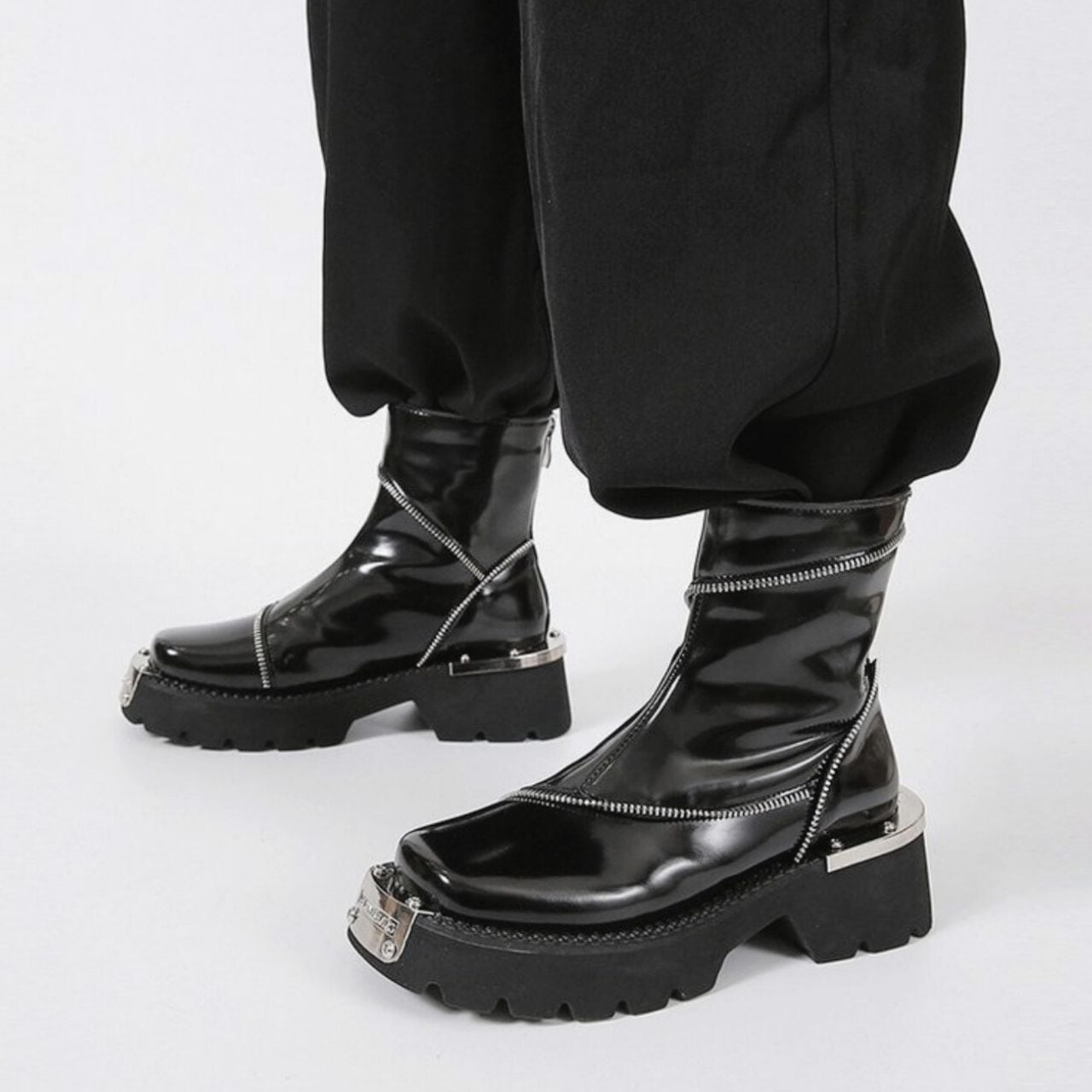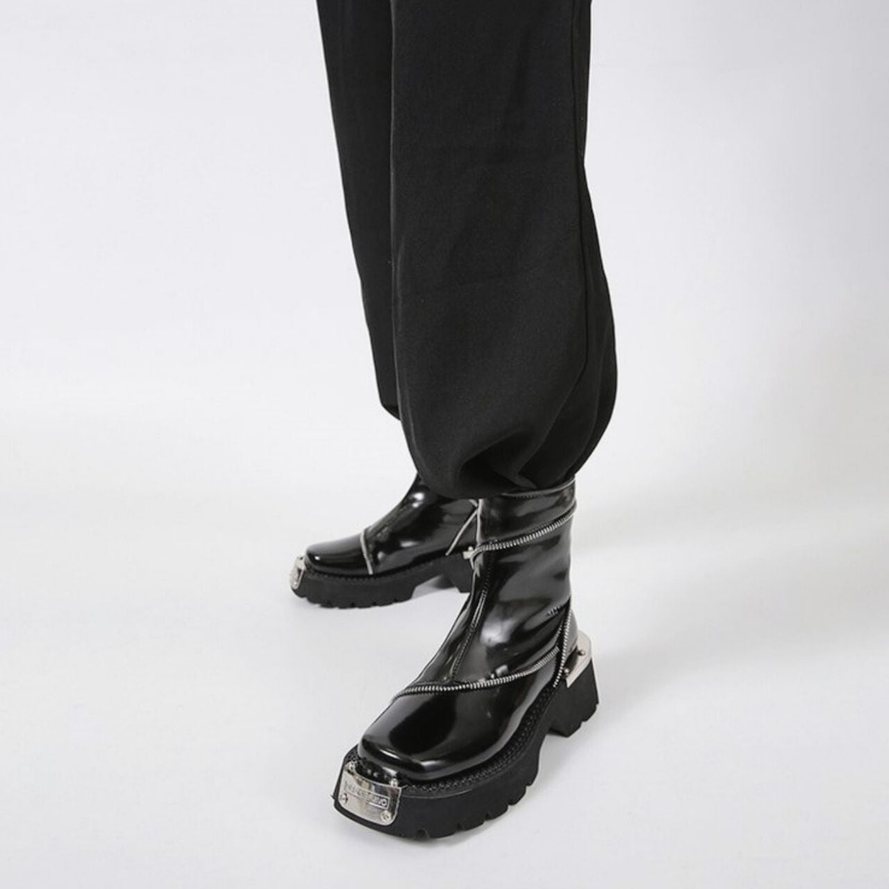 ファスナーデザインが施されたクールな印象のブリティッシュブーツ。