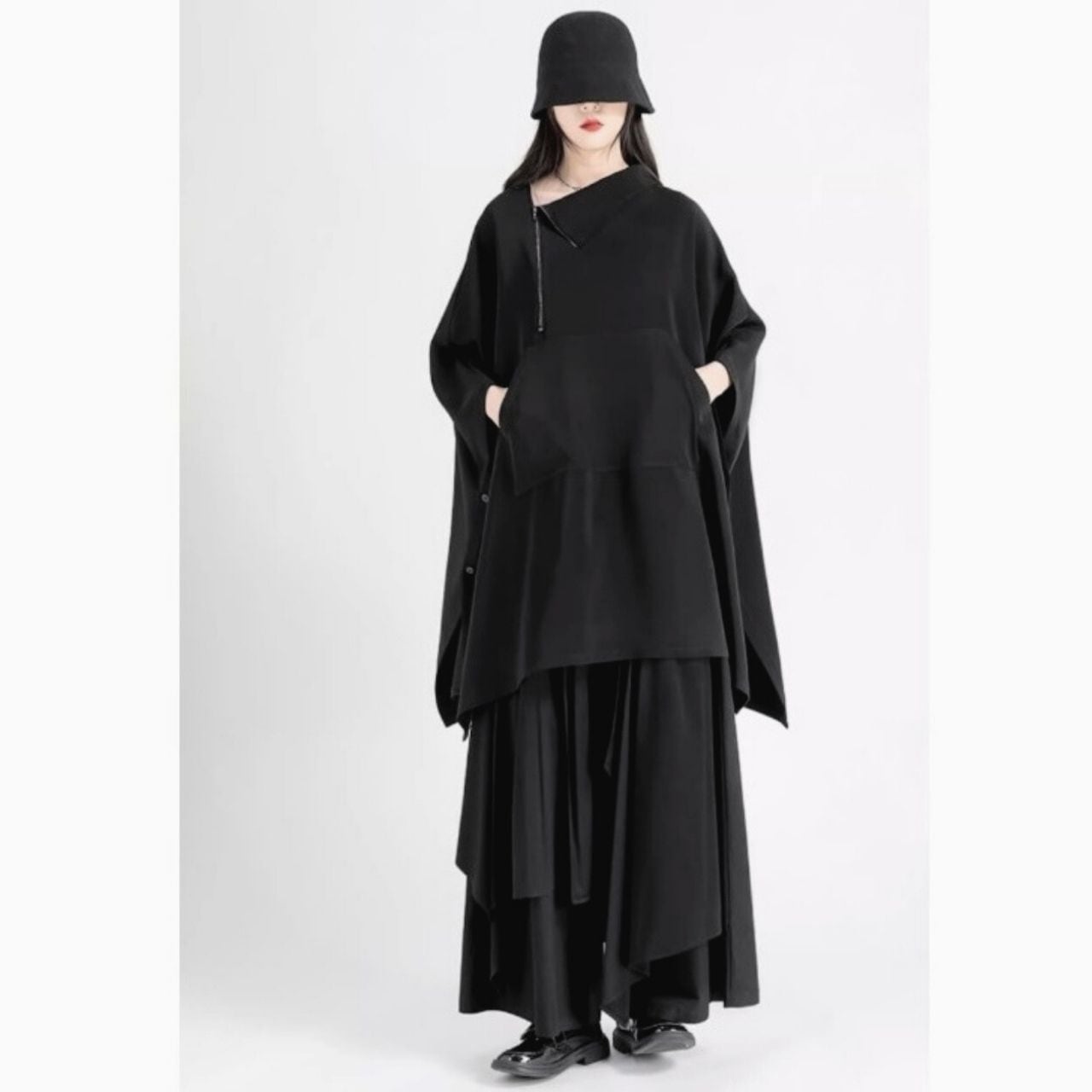 【商品詳細】 独特なデザインが魅力のポンチョ風トップス。 流れるような袖のラインが特徴で、カジュアルながらもエレガントな印象を与えます。 ラフに着こなしながら、洗練されたスタイルを楽しむことができる一着。 【Size】 S 胸囲: 120cm 着丈: 84cm 裾まわり: 130cm M 胸囲: 124cm 着丈: 85cm 裾まわり: 134cm L 胸囲: 128cm 着丈: 86cm 裾まわり: 138cm XL 胸囲: 132cm 着丈: 87cm 裾まわり: 142cm ※採寸方法により1〜3cmの誤差がある場合がございます ※モデル 身長161cm Sサイズ着用 【Color】 ブラック 【fabric】 ナイロンコットン 【お届けについて】 こちらの商品は海外店舗より直接発送となる為、 ご入金からお届けまでに1〜4週間前後お時間をいただきます(メーカー長期休業時を除く)。 ■注意事項 ・タイミングによっては 商品在庫切れにより 注文キャンセルとさせていただく恐れもございますので、 予めご了承くださいませ。 ・こちらは輸入品となります。 日本製とは検品基準が異なる為、新品未使用品でも ごくわずかな汚れや傷がある場合もございます。 ・商品の色味は、お手持ちのスマートフォンの 画面によって実物と若干異なる場合がございます。 ・イメージ違いやサイズ等、お客様都合による交換、 返品、キャンセルは対応出来かねます。 -------------------------- 【SHOP ABOUT】【SHOP ABOUT】ご購入前にこちらをお読みください https://cravi.shopselect.net/about 【HOT ITEMはこちら】 https://shop.cravi.net/categories/6009834 【ハット・ストール等の小物はこちら】 https://shop.cravi.net/categories/5943609 【合わせ買いに!他では買えない個性的なアクセサリー】 https://shop.cravi.net/categories/6120742