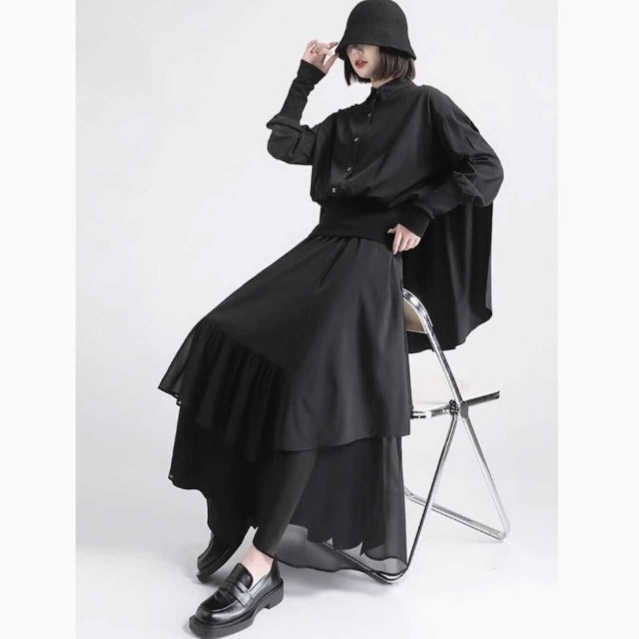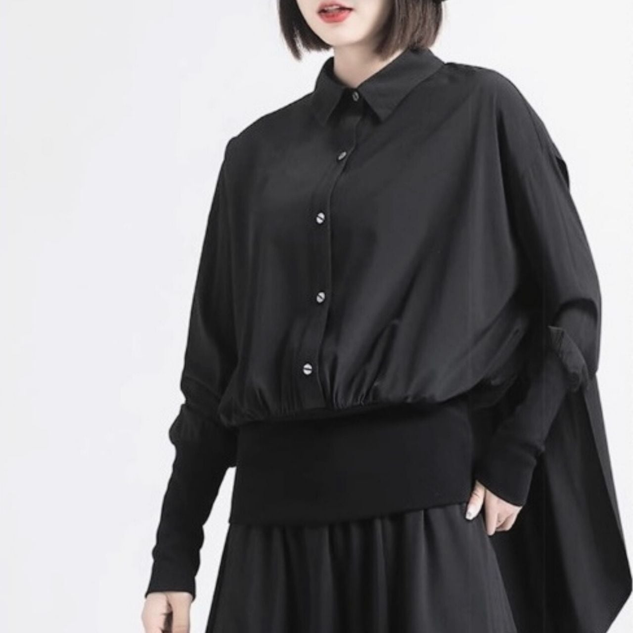 【商品詳細】 ウエスト部分がリブ仕様で程よくフィットし、メリハリのあるシルエットを演出するモードなブラウス。 肩から流れるように広がるドレープ生地がバックスタイルに印象的な動きを加え、まるでマントを羽織ったような存在感。 モノトーンコーデに奥行きを与え、1枚で主役級の着映えを叶えるアイテムです。 【Size】 S 肩幅:58cm 胸囲:112cm 前着丈:62cm 袖丈:49cm M 肩幅:59cm 胸囲:116cm 前着丈:63cm 袖丈:50cm L 肩幅:60cm 胸囲:120cm 前着丈:64cm 袖丈:51cm XL 肩幅:61cm 胸囲:124cm 前着丈:65cm 袖丈:52cm ※採寸方法により1〜3cmの誤差がある場合がございます ※モデル 身長161cm Mサイズ着用 【Color】 ブラック 【fabric】 コットン80%ポリエステル20% 【お届けについて】 こちらの商品は海外店舗より直接発送となる為、 ご入金からお届けまでに1〜4週間前後お時間をいただきます(メーカー長期休業時を除く)。 ■注意事項 ・タイミングによっては 商品在庫切れにより 注文キャンセルとさせていただく恐れもございますので、 予めご了承くださいませ。 ・こちらは輸入品となります。 日本製とは検品基準が異なる為、新品未使用品でも ごくわずかな汚れや傷がある場合もございます。 ・商品の色味は、お手持ちのスマートフォンの 画面によって実物と若干異なる場合がございます。 ・イメージ違いやサイズ等、お客様都合による交換、 返品、キャンセルは対応出来かねます。 -------------------------- 【SHOP ABOUT】【SHOP ABOUT】ご購入前にこちらをお読みください https://cravi.shopselect.net/about 【HOT ITEMはこちら】 https://shop.cravi.net/categories/6009834 【ハット・ストール等の小物はこちら】 https://shop.cravi.net/categories/5943609 【合わせ買いに!他では買えない個性的なアクセサリー】 https://shop.cravi.net/categories/6120742