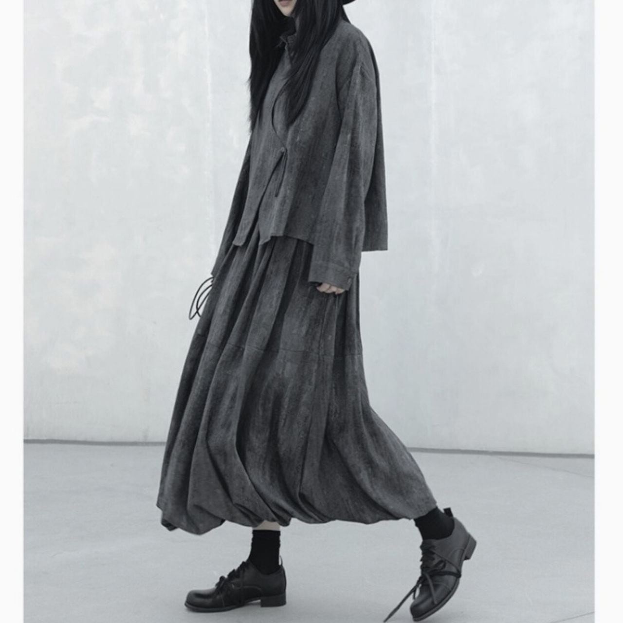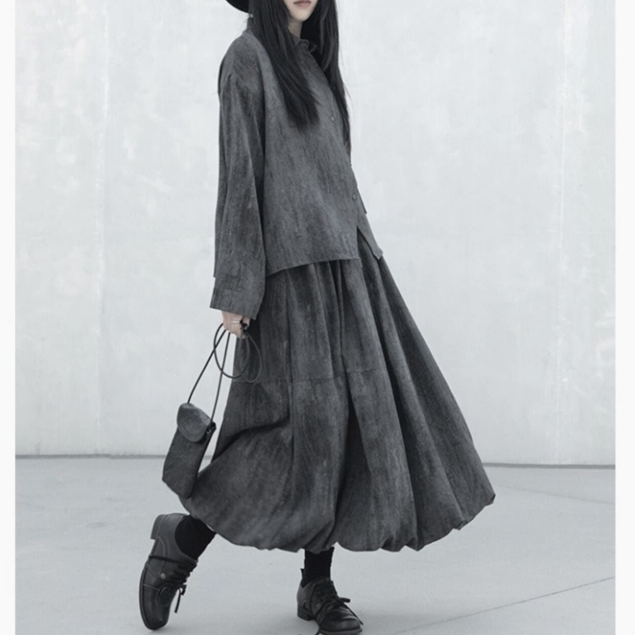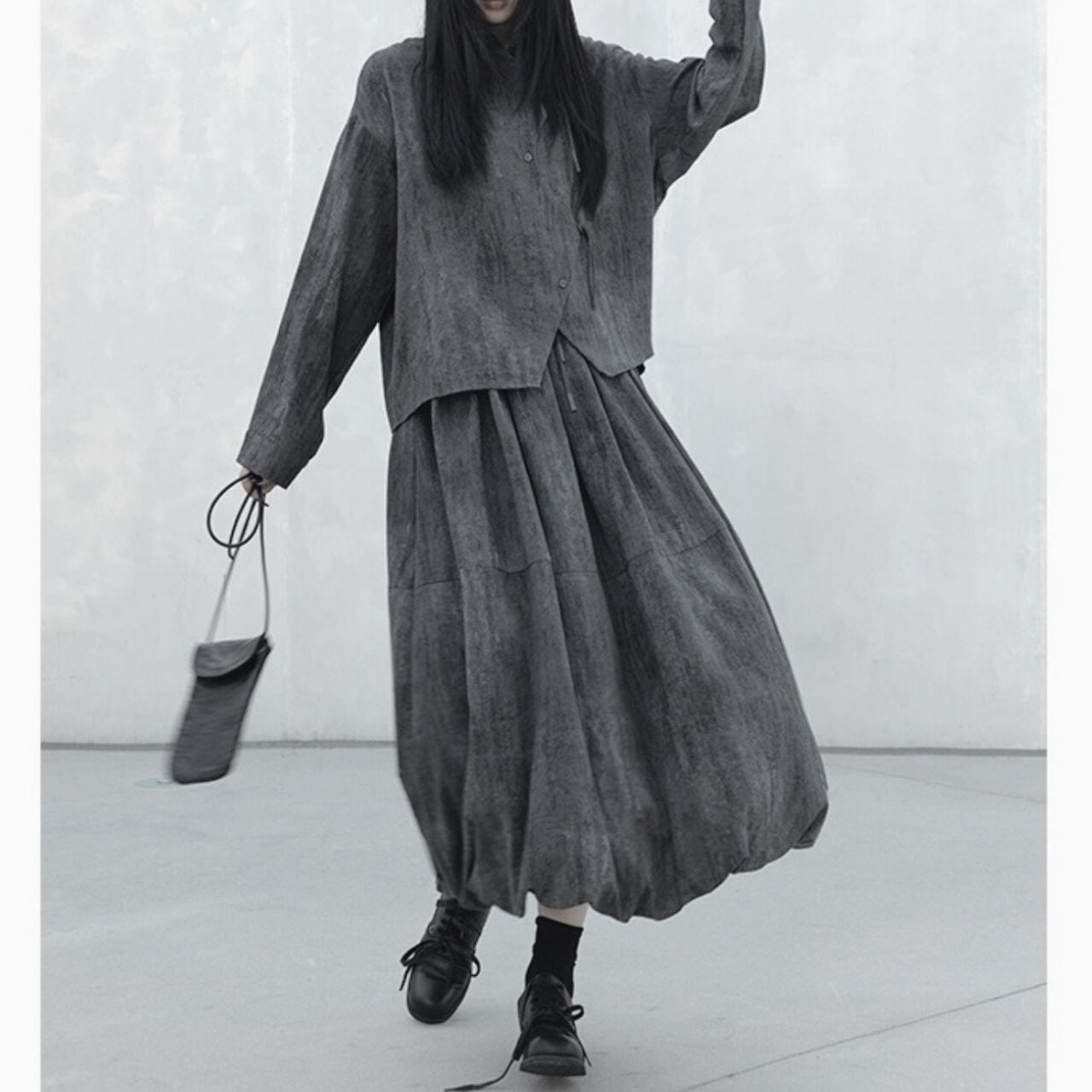 ふんわりボリュームのあるシルエットが、歩くたびに揺れ動き優雅さを演出します。