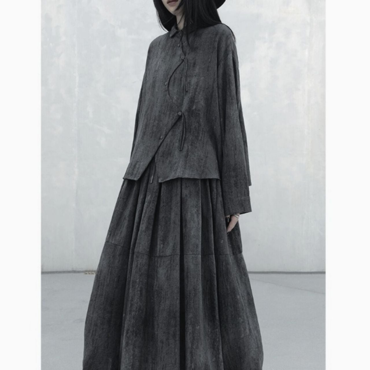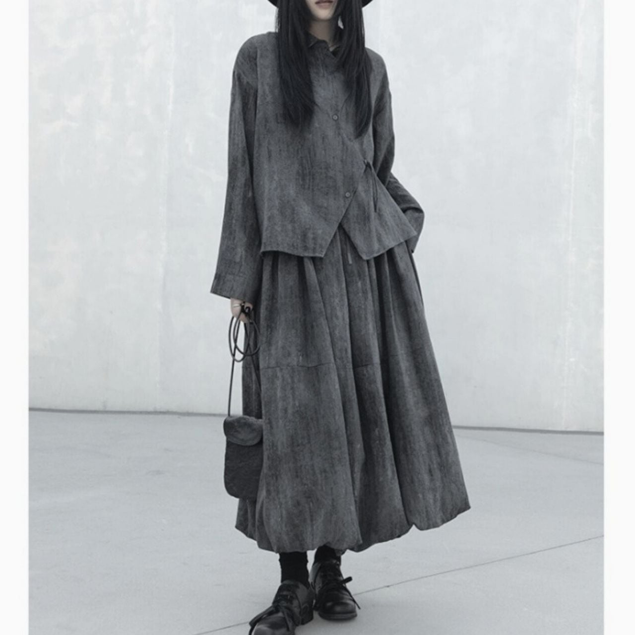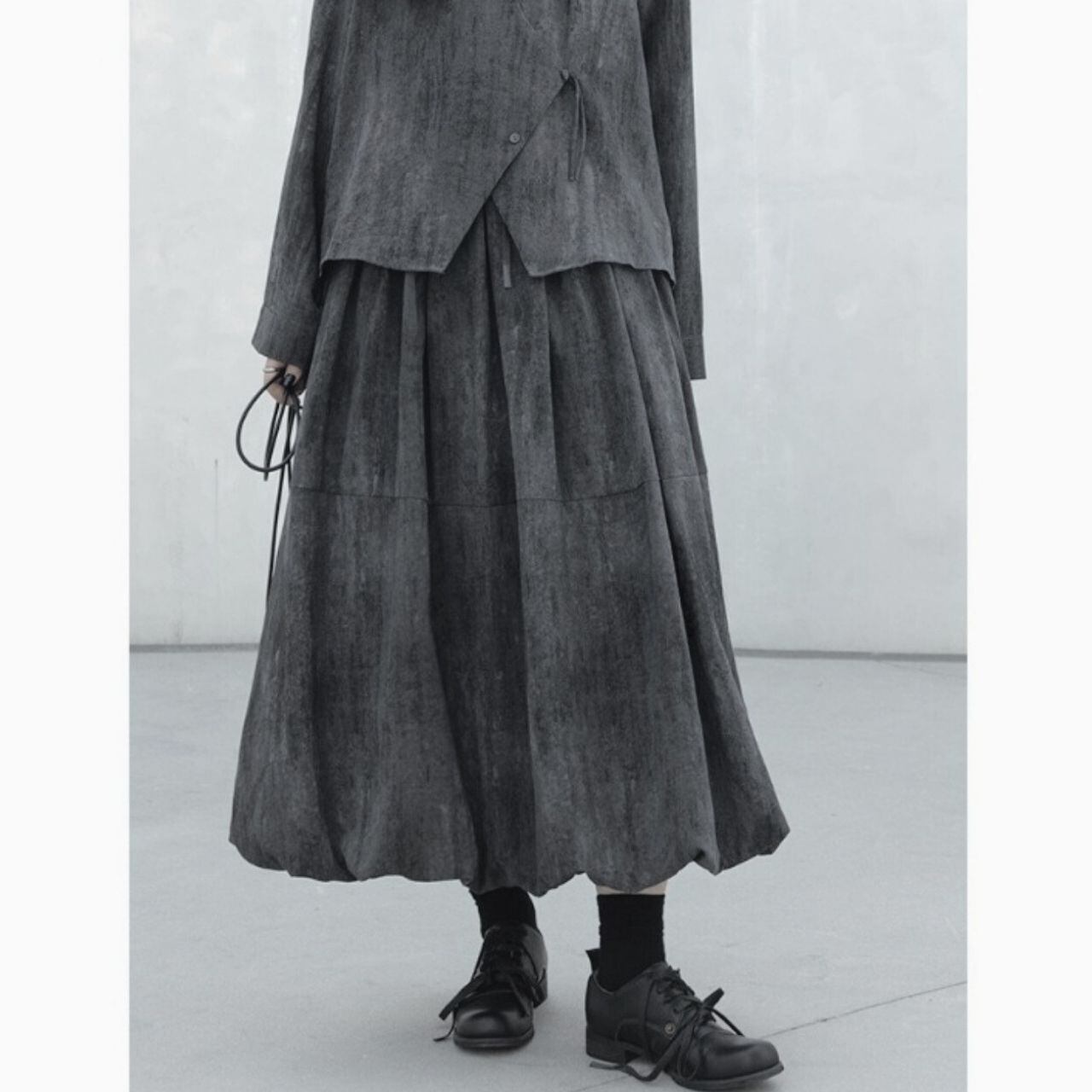 独特な切り替えデザインが目を惹くロングスカート。