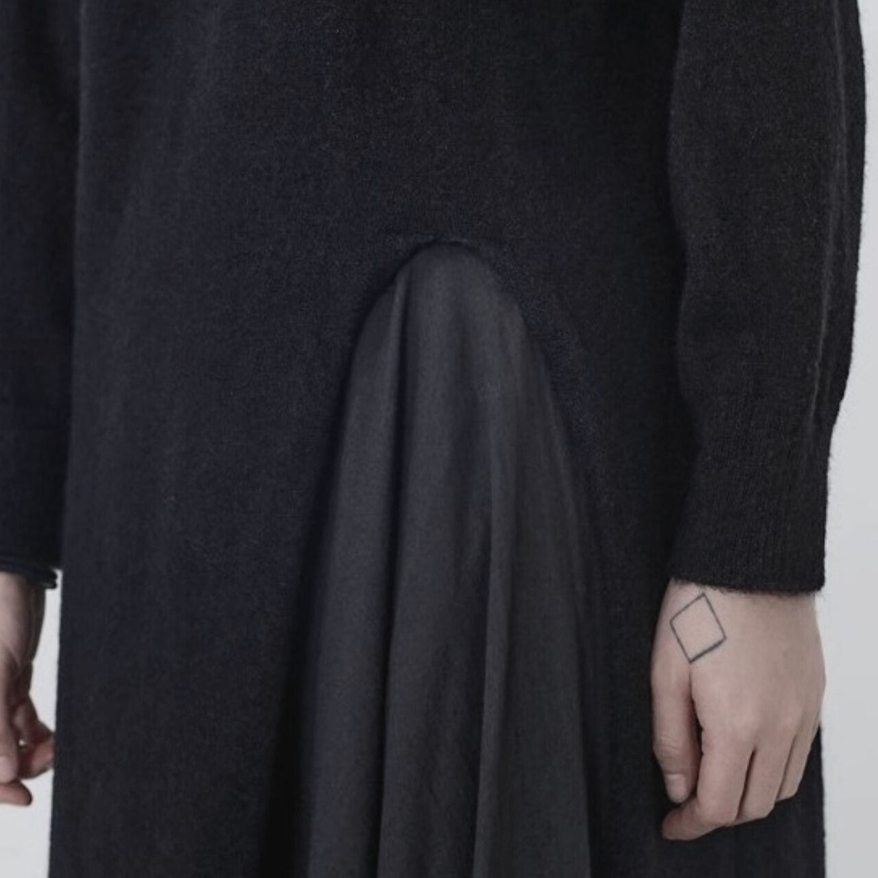 洗練されたシルエットとサイドスリットが魅力のニットロングドレス。