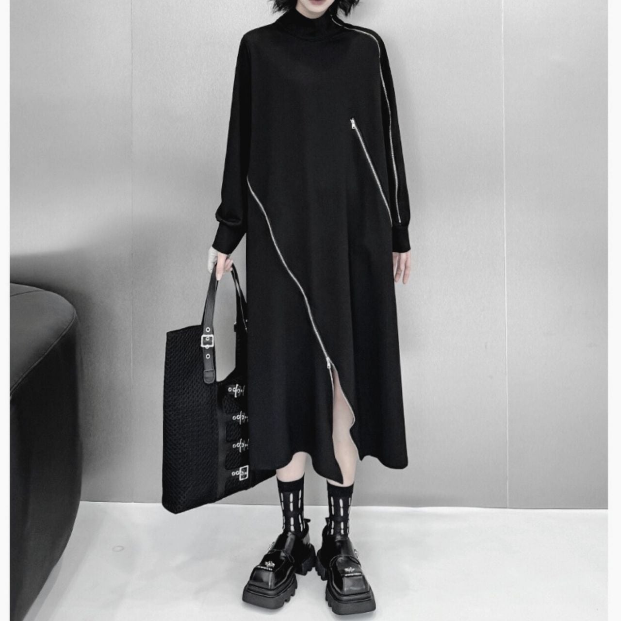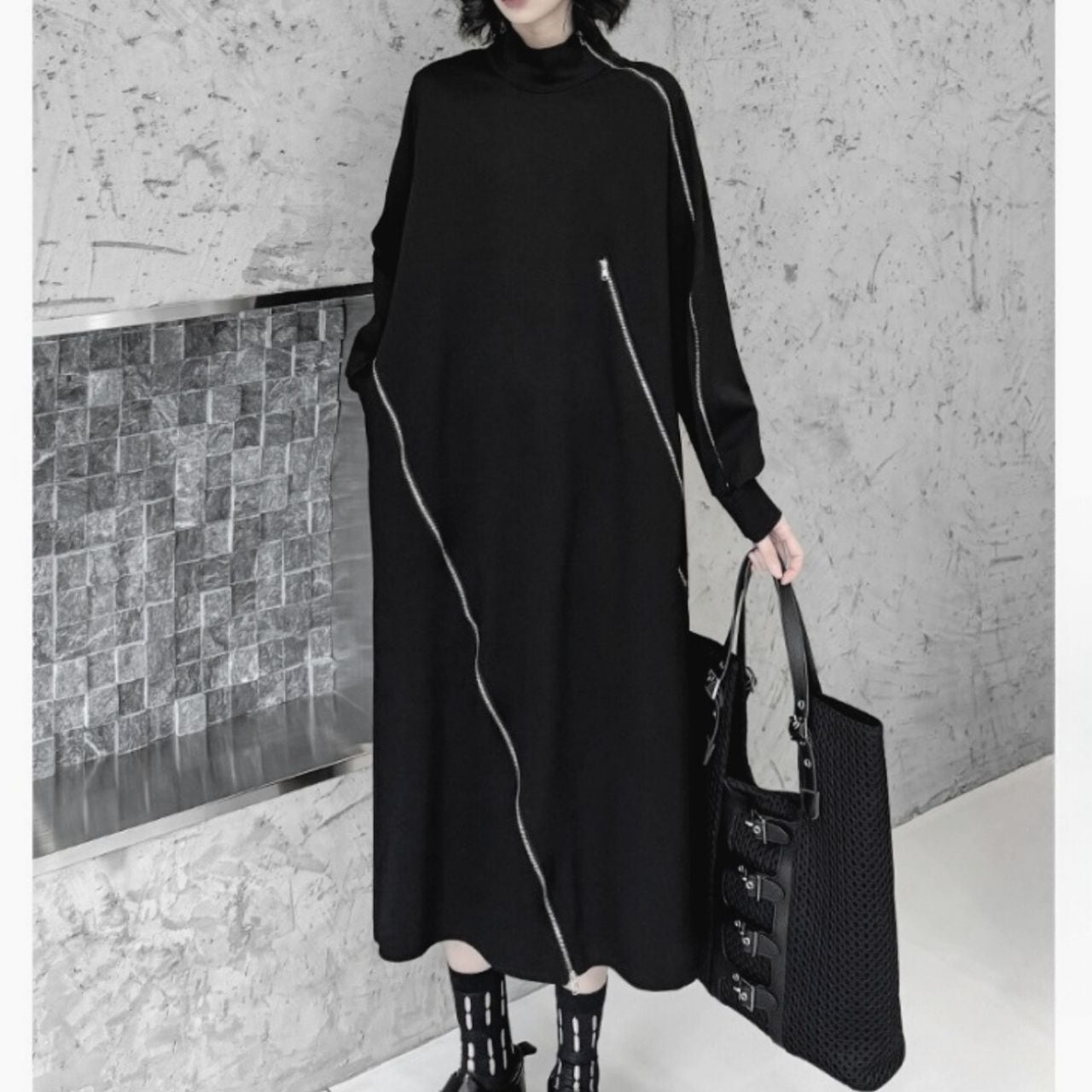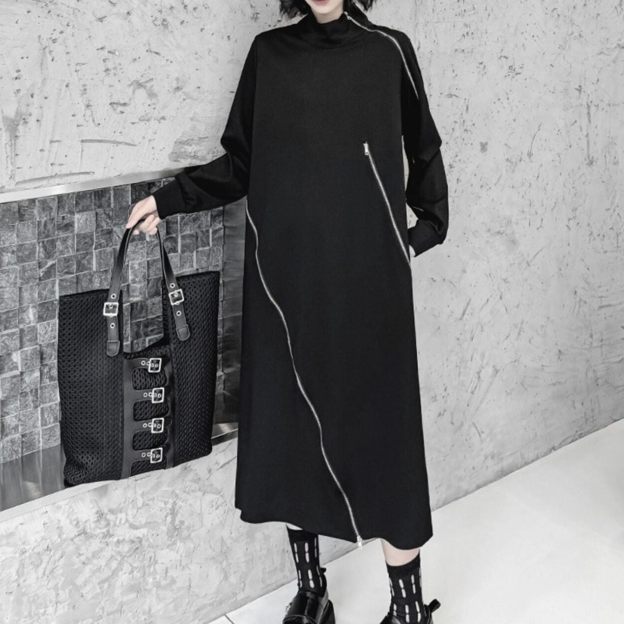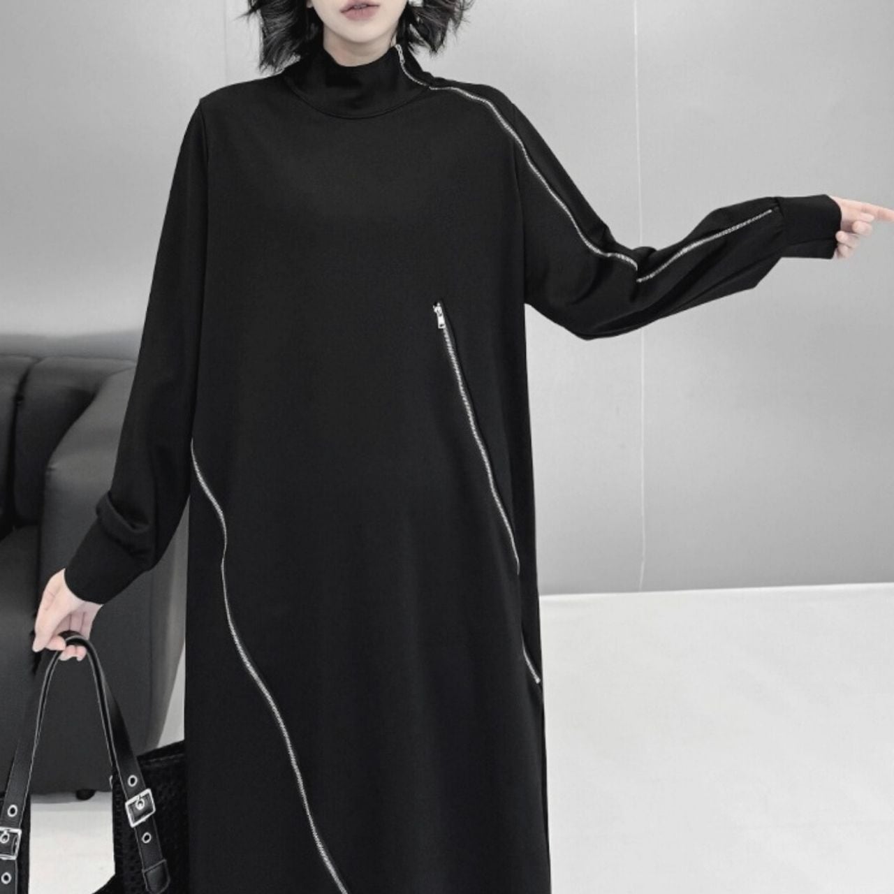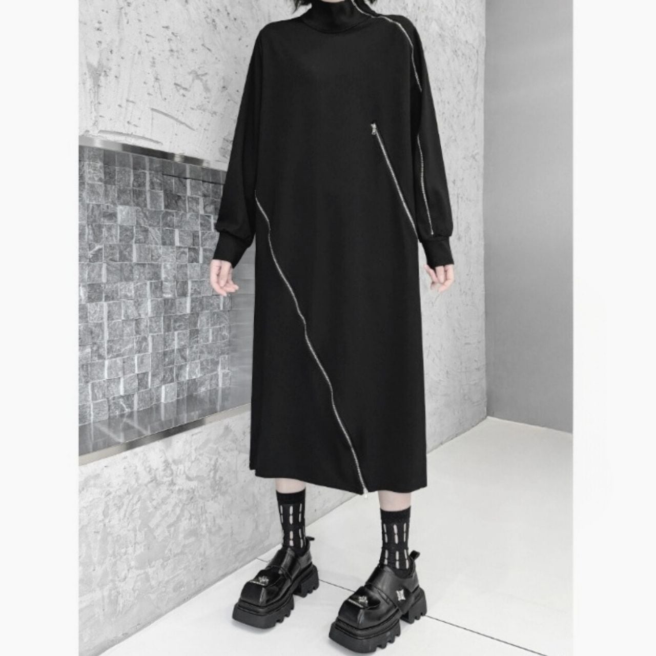 ハイネックとジップデザインが、スタイリッシュなアクセントになっています。