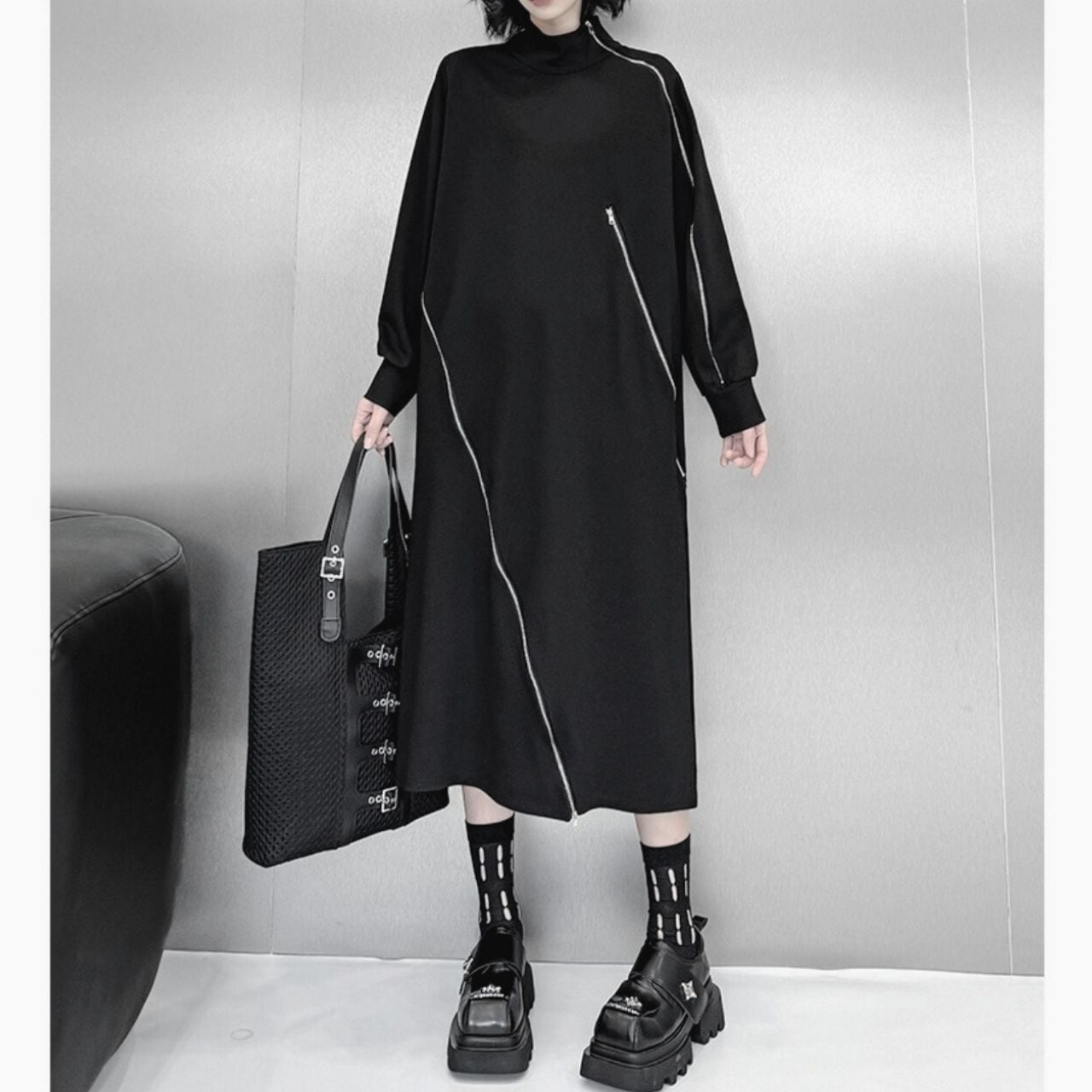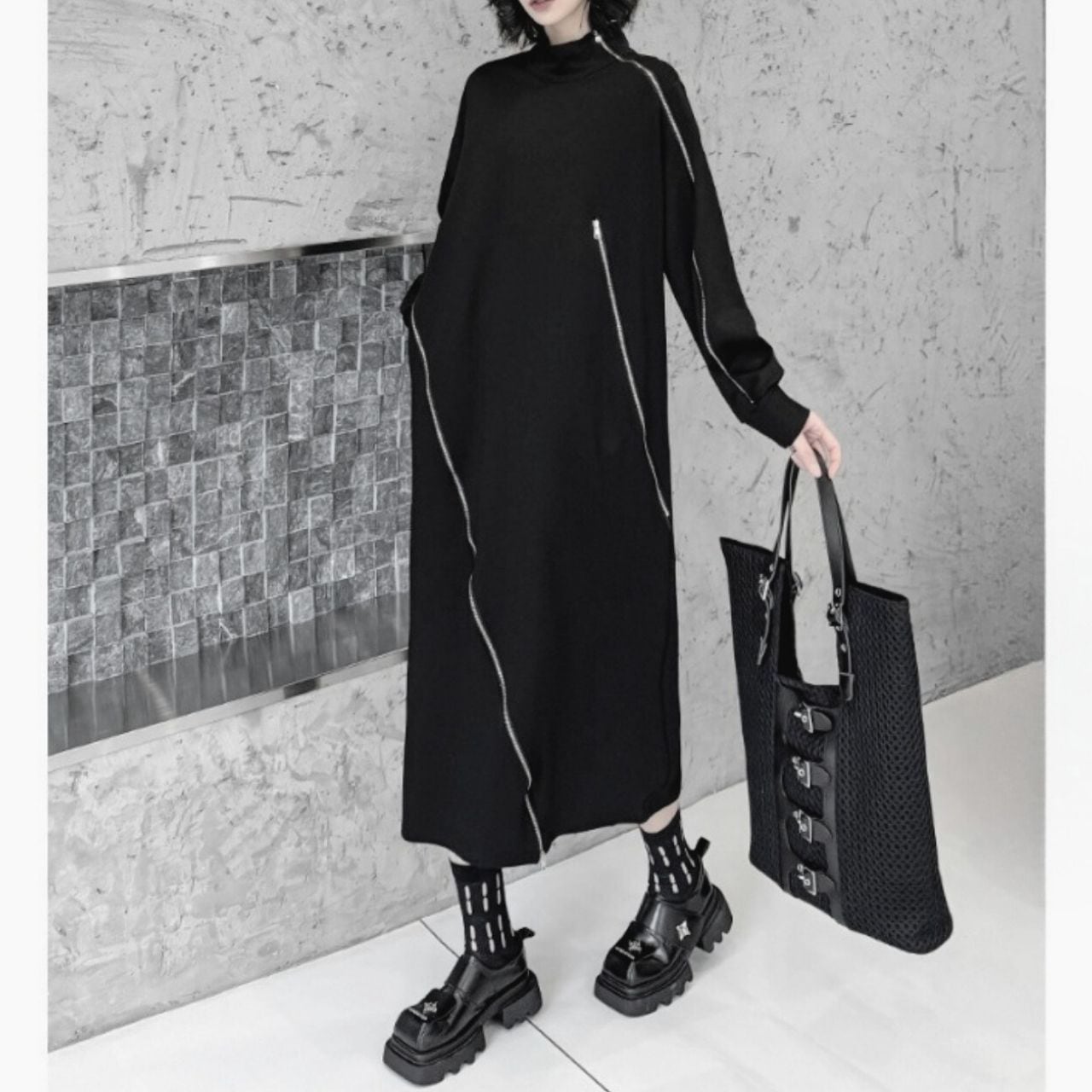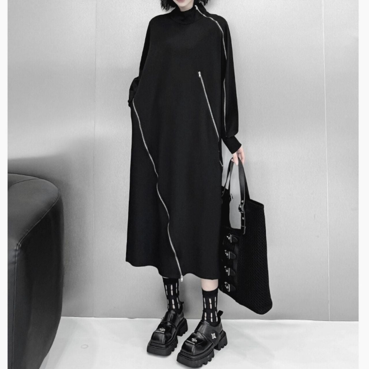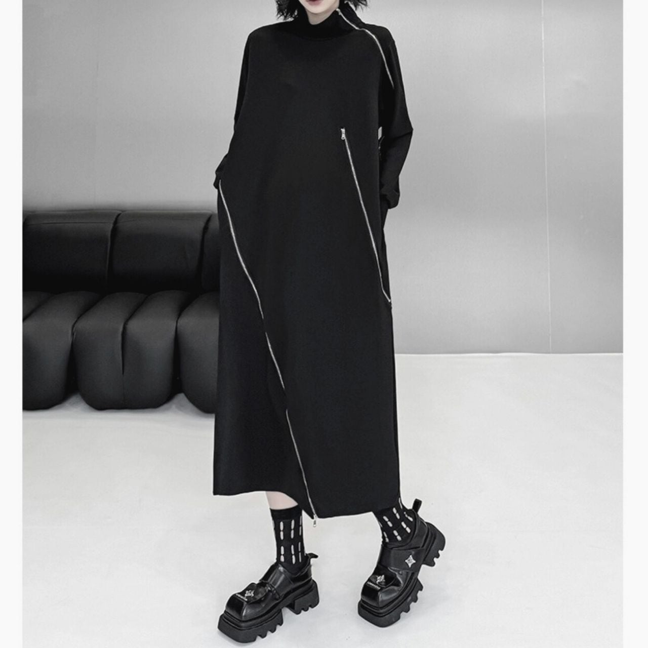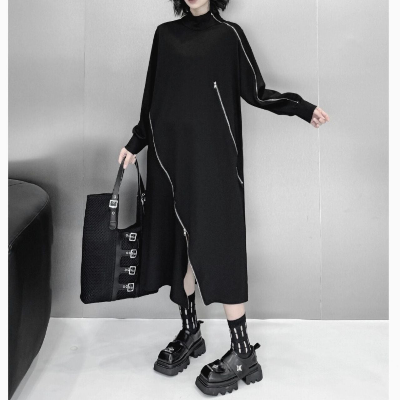 ハイネックとジップデザインが、スタイリッシュなアクセントになっています。