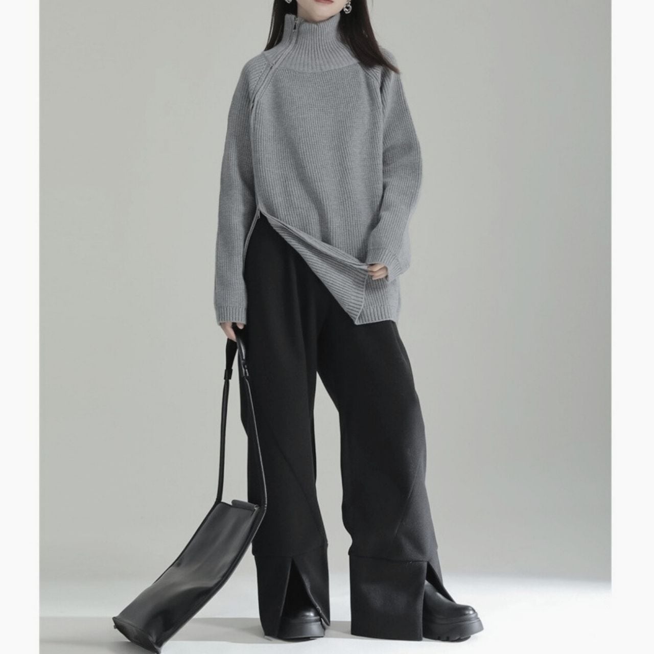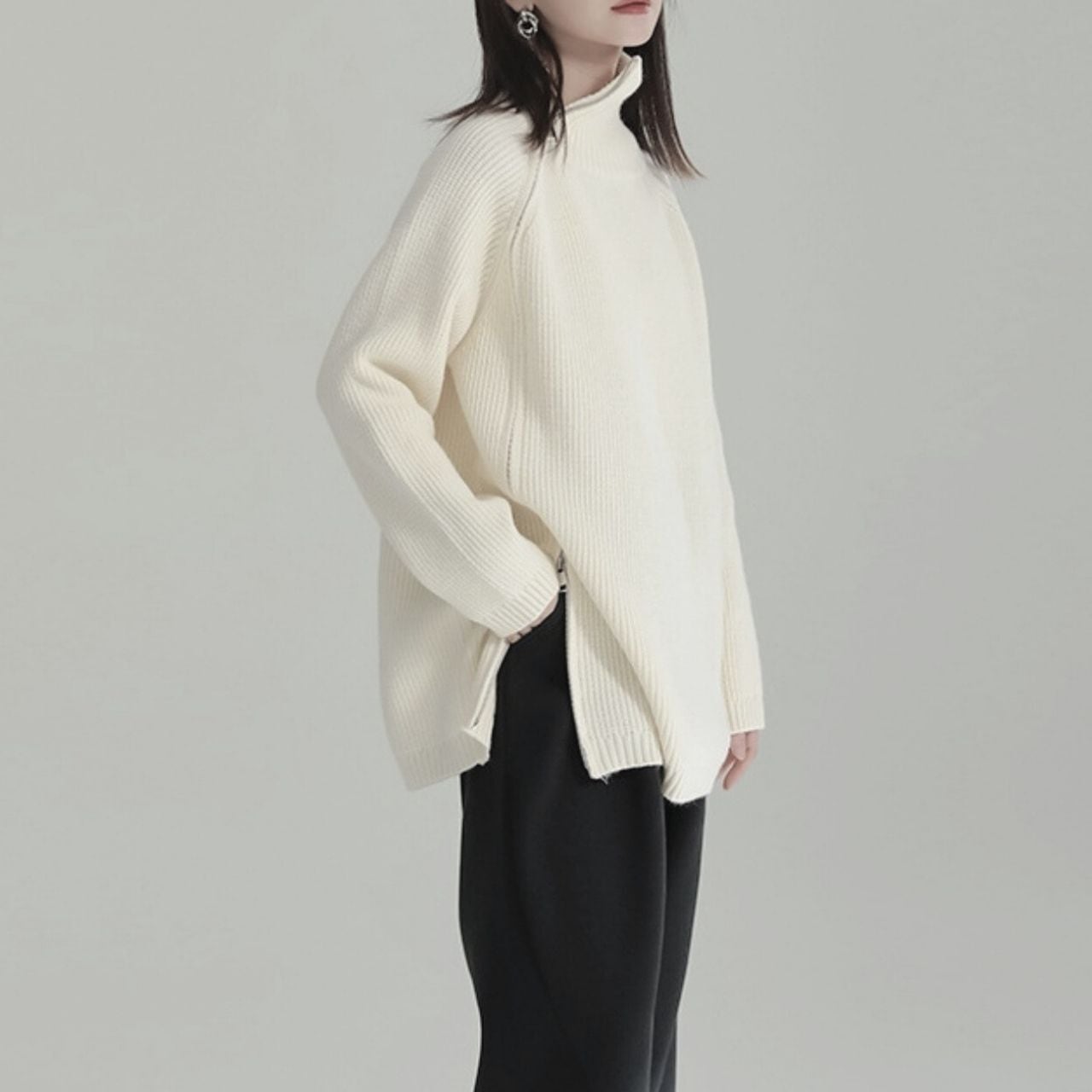 サイドスリットがアクセントになったオーバーフィットサイズのニットセーター。