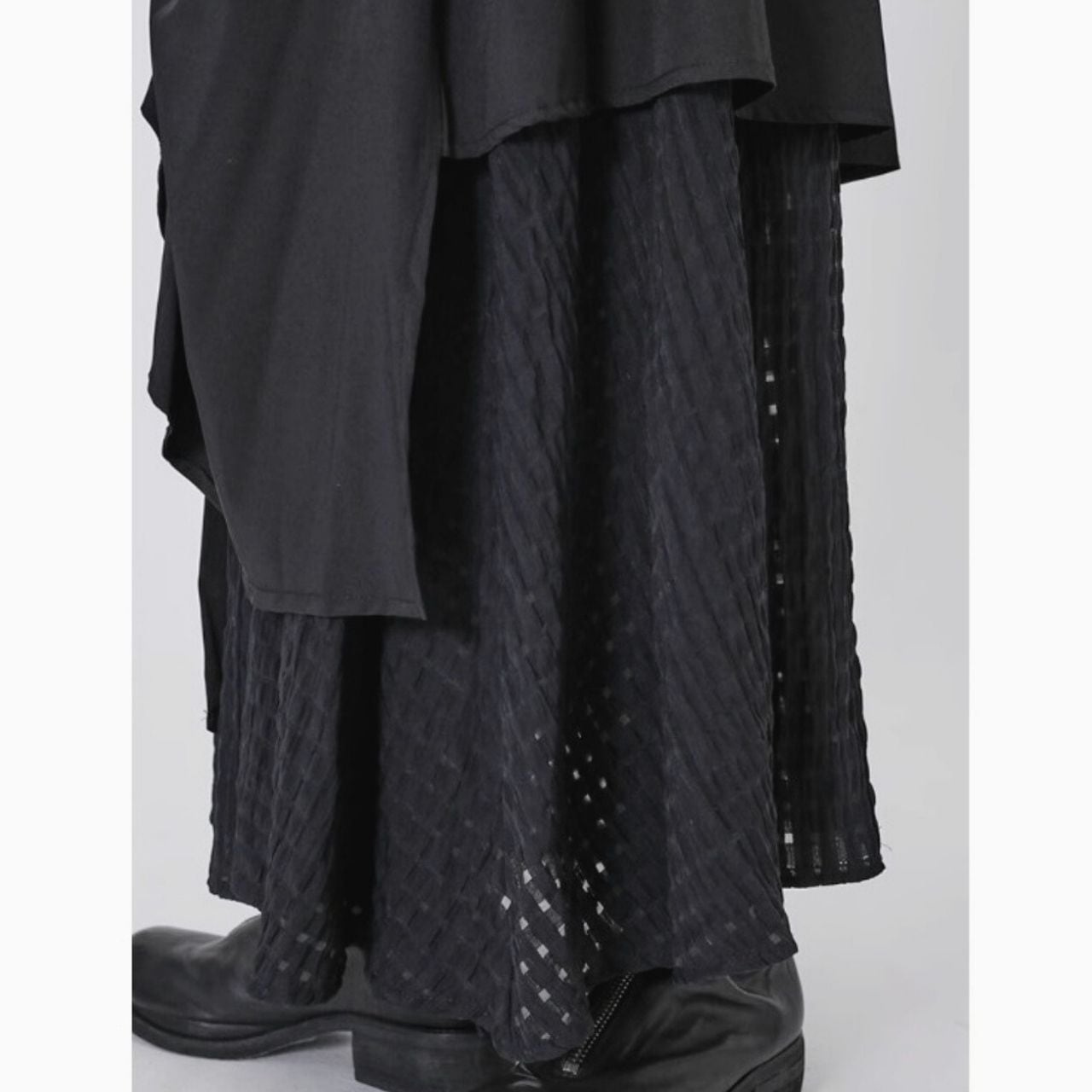 上質な素材で仕立てられたトップ部分と、繊細な透け感が美しいボトム部分のレイヤードが、洗練されたスタイルを演出します。