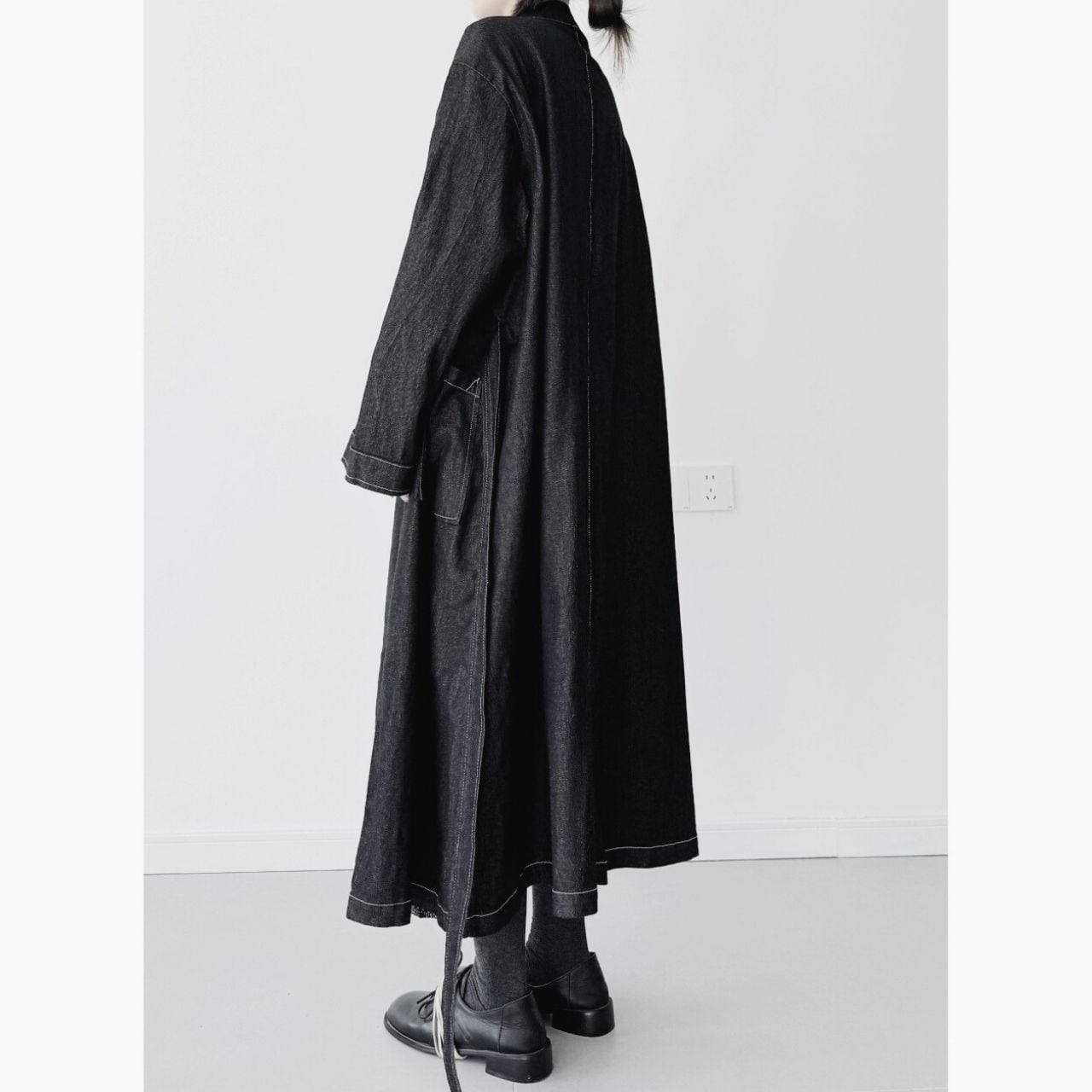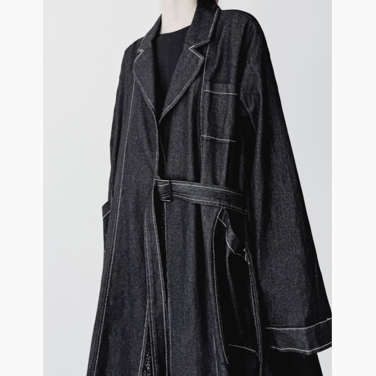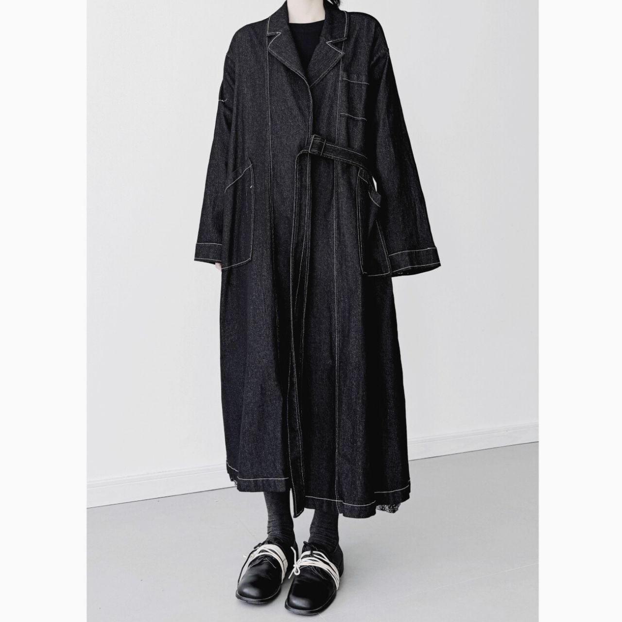 ノッチドラペルとベルトが、スタイリッシュさを演出します。