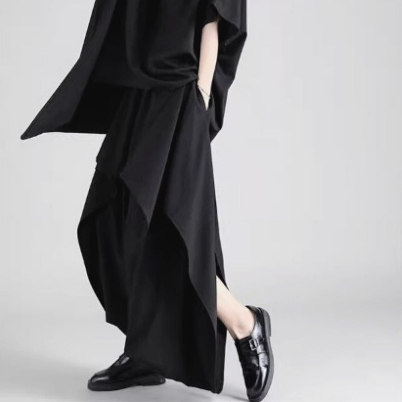 モードな雰囲気と着心地のよさを兼ね備えたワイドレッグサルエルパンツ。
