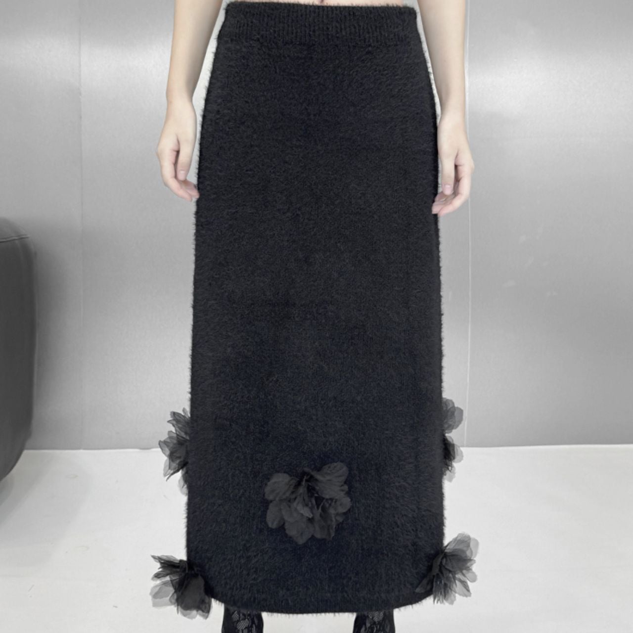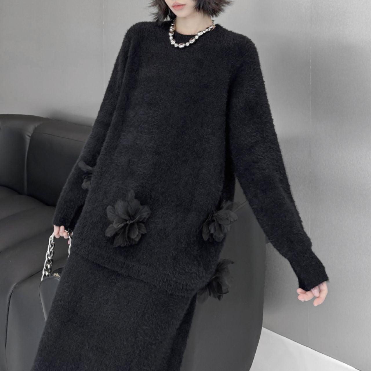 シックなブラックカラーが魅力的なニットのセットアップ。
